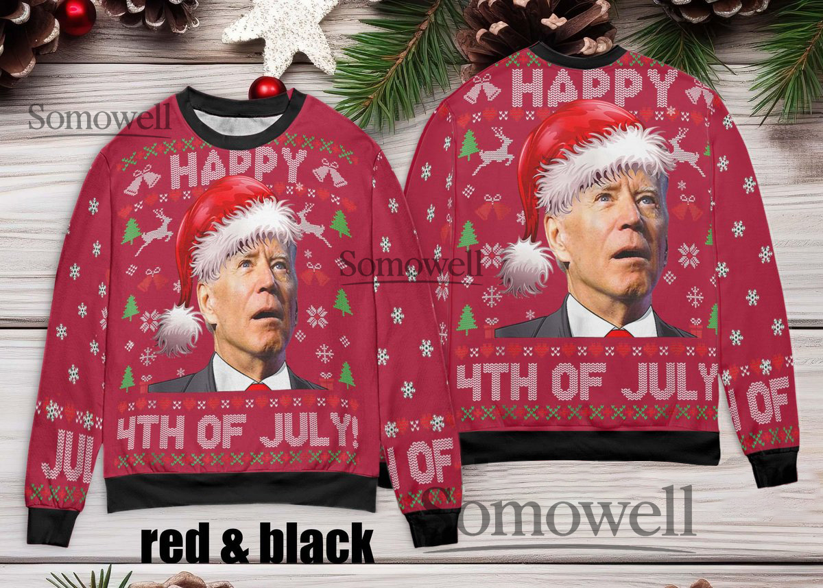 Funny Happy 4th Of July Santa Hat Ugly Christmas Sweater Black Red Humor Edition Multi Color Edition