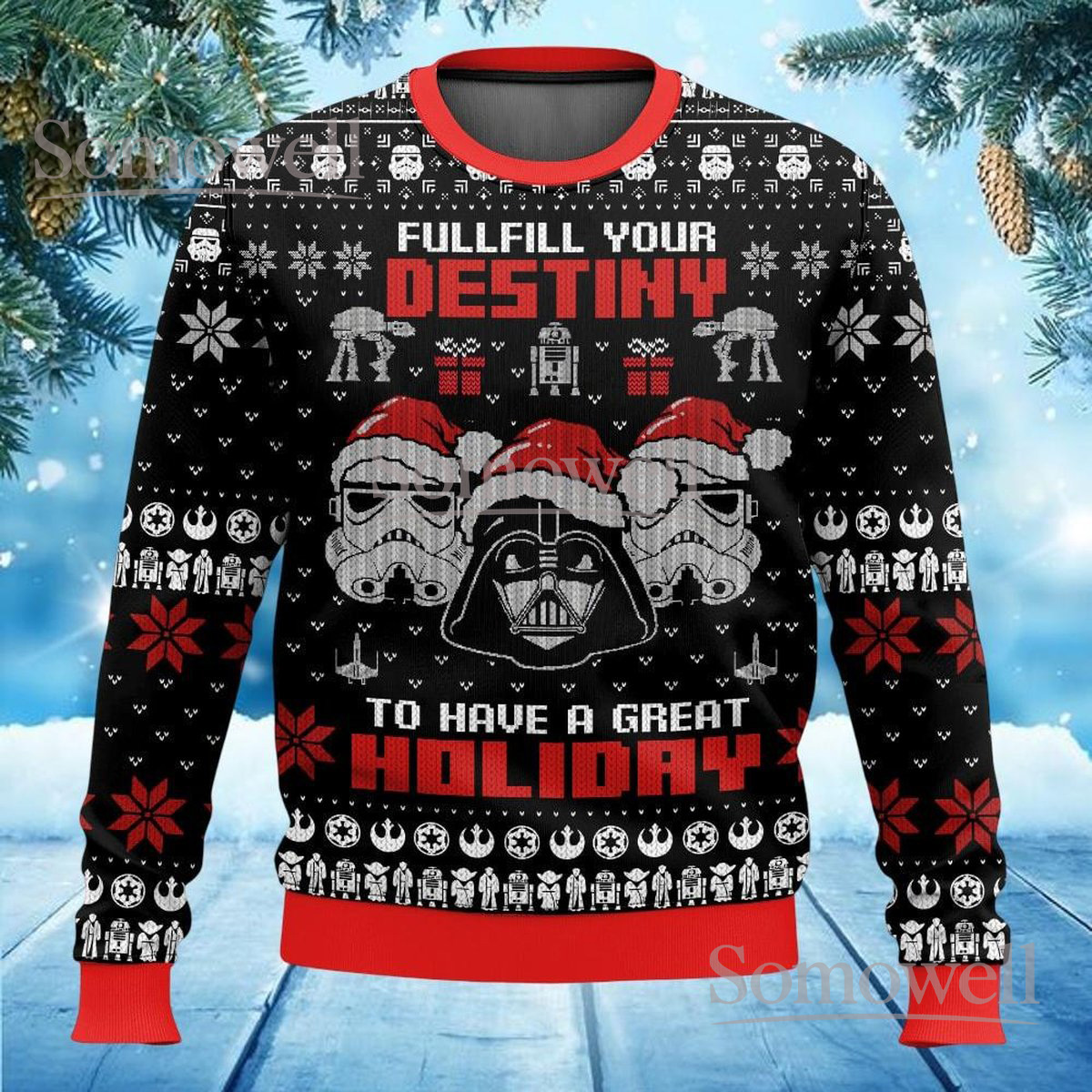 Fulfill Your Destiny Star Wars Ugly Christmas Sweater Darth Vader Holiday Knit Jumper Gift