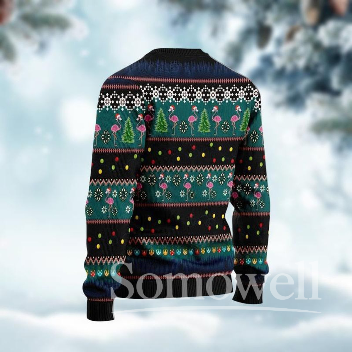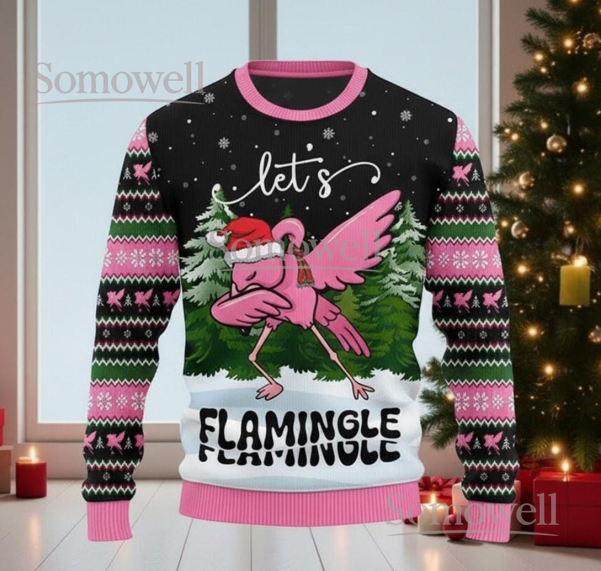 Flamingo Christmas Black Ugly Sweater Merry Flocking Holiday Knit Jumper Funny Bird Design