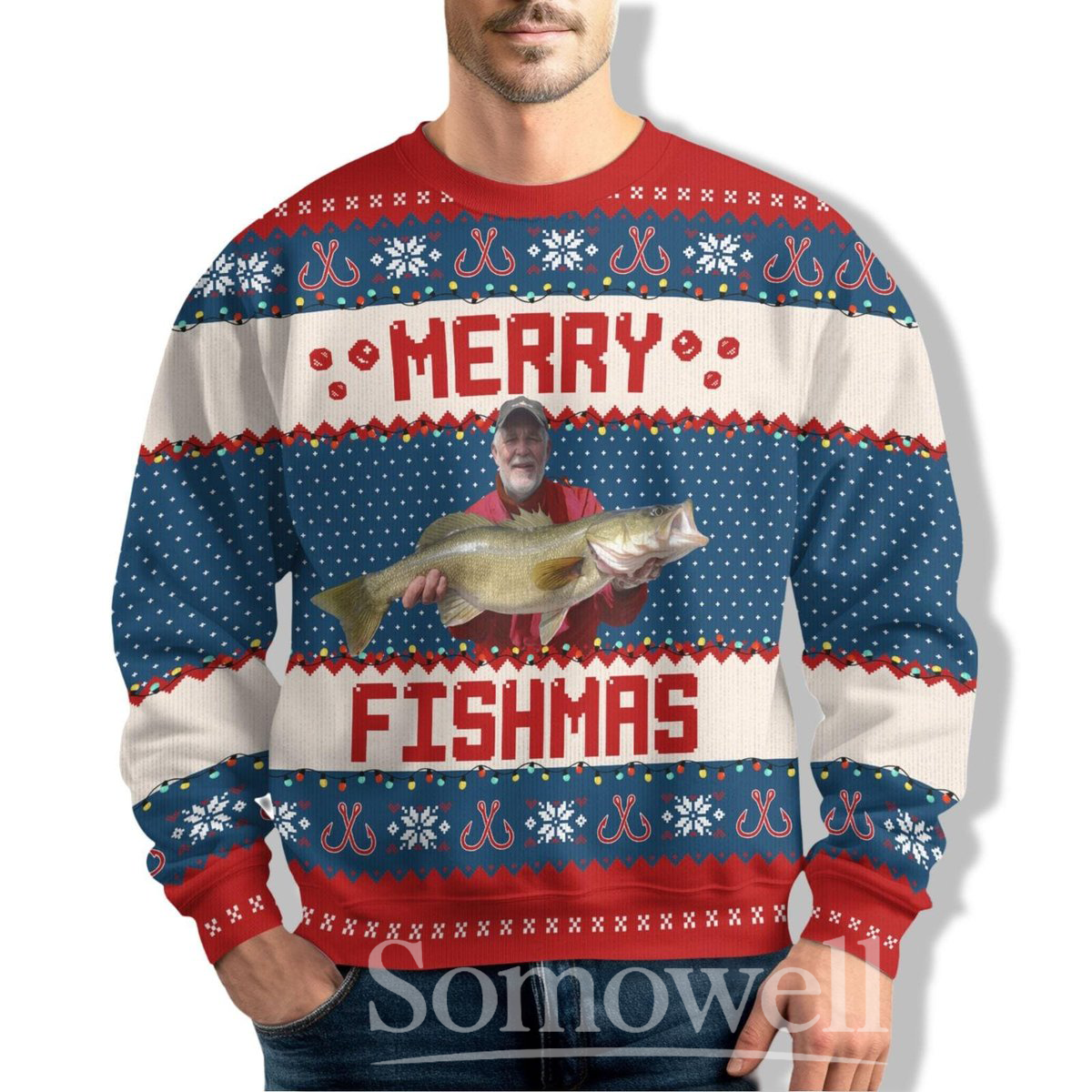 Fishing Ugly Christmas Sweater Merry Fishmas Funny Fisherman Holiday Knit Pullover Gift