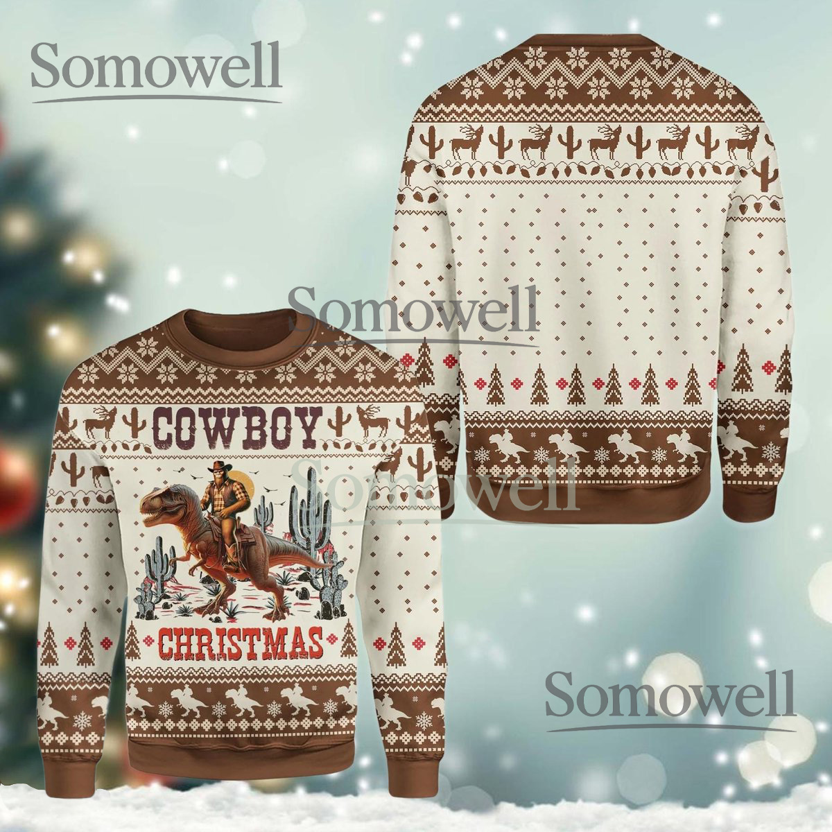 Cowboy Santa Brown Christmas Ugly Sweater Western Horse Funny Holiday Knit Jumper