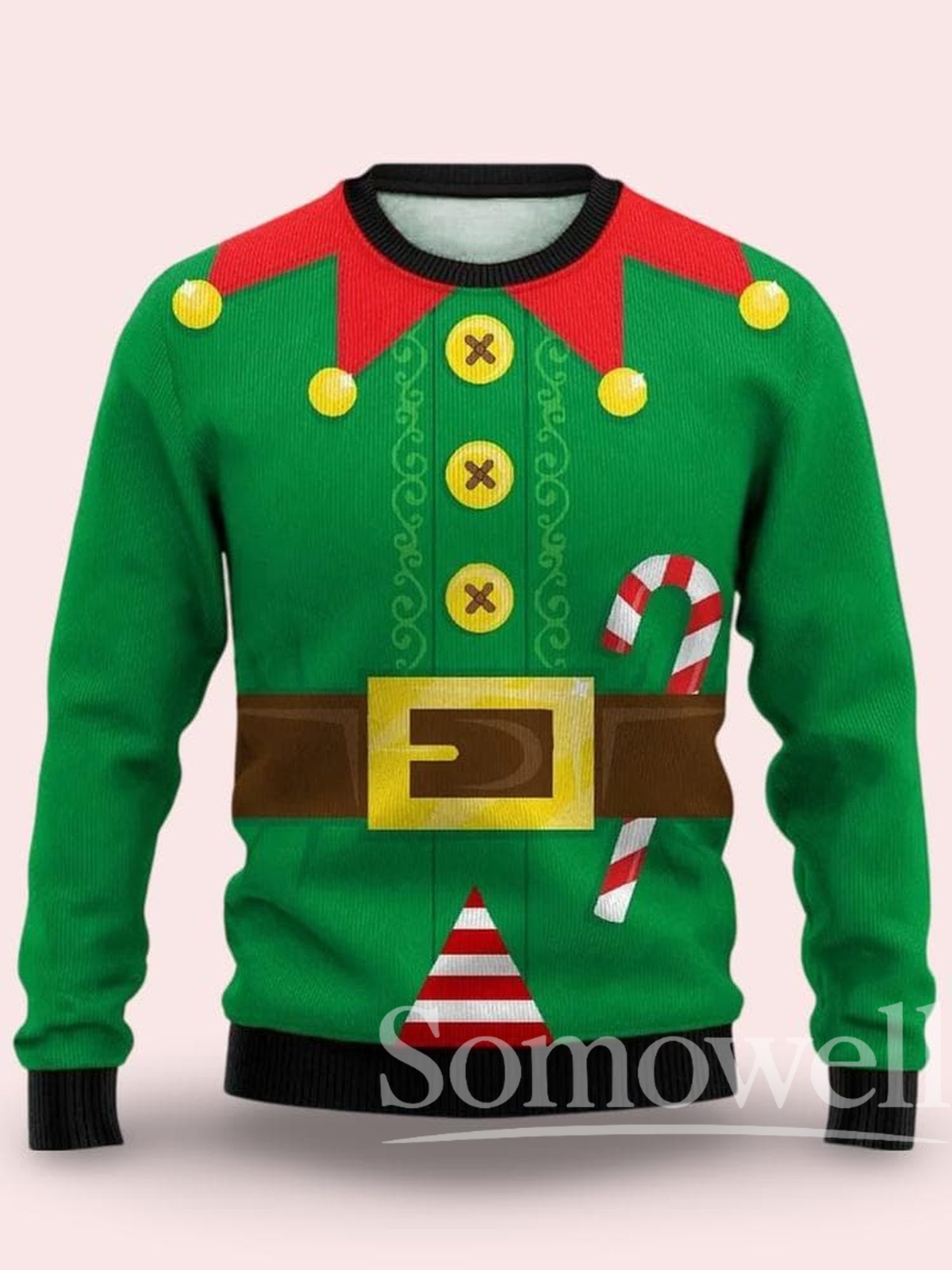 Elf Costume Ugly Christmas Sweater Funny Green Santa Helper Holiday Knit Pullover Gift