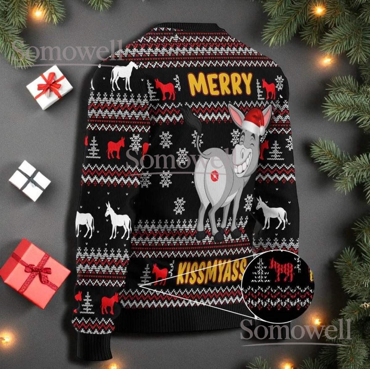 Donkey Kiss My Ass Christmas Black Ugly Sweater Funny Holiday Knit Jumper