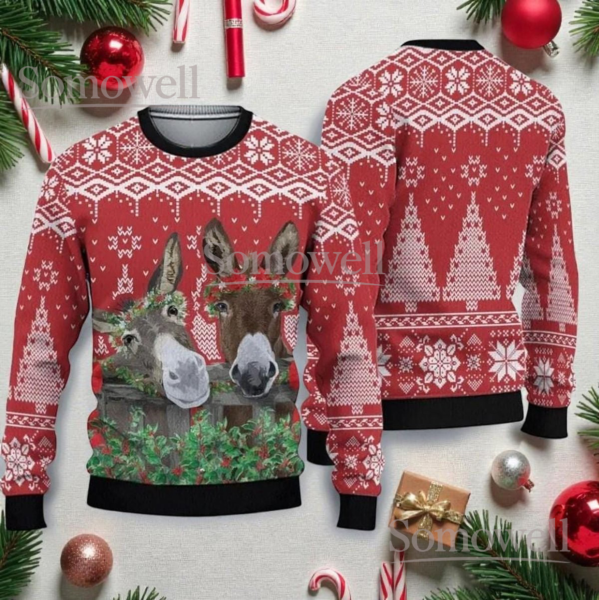 Donkey Pair Christmas Red Ugly Sweater Animal Lovers Holiday Knit Jumper