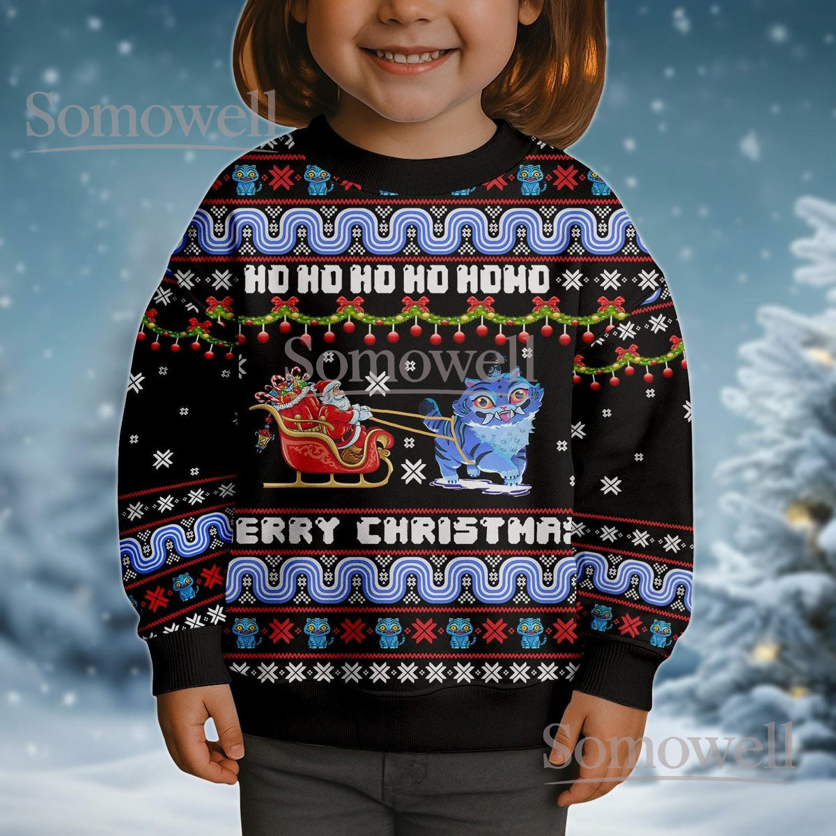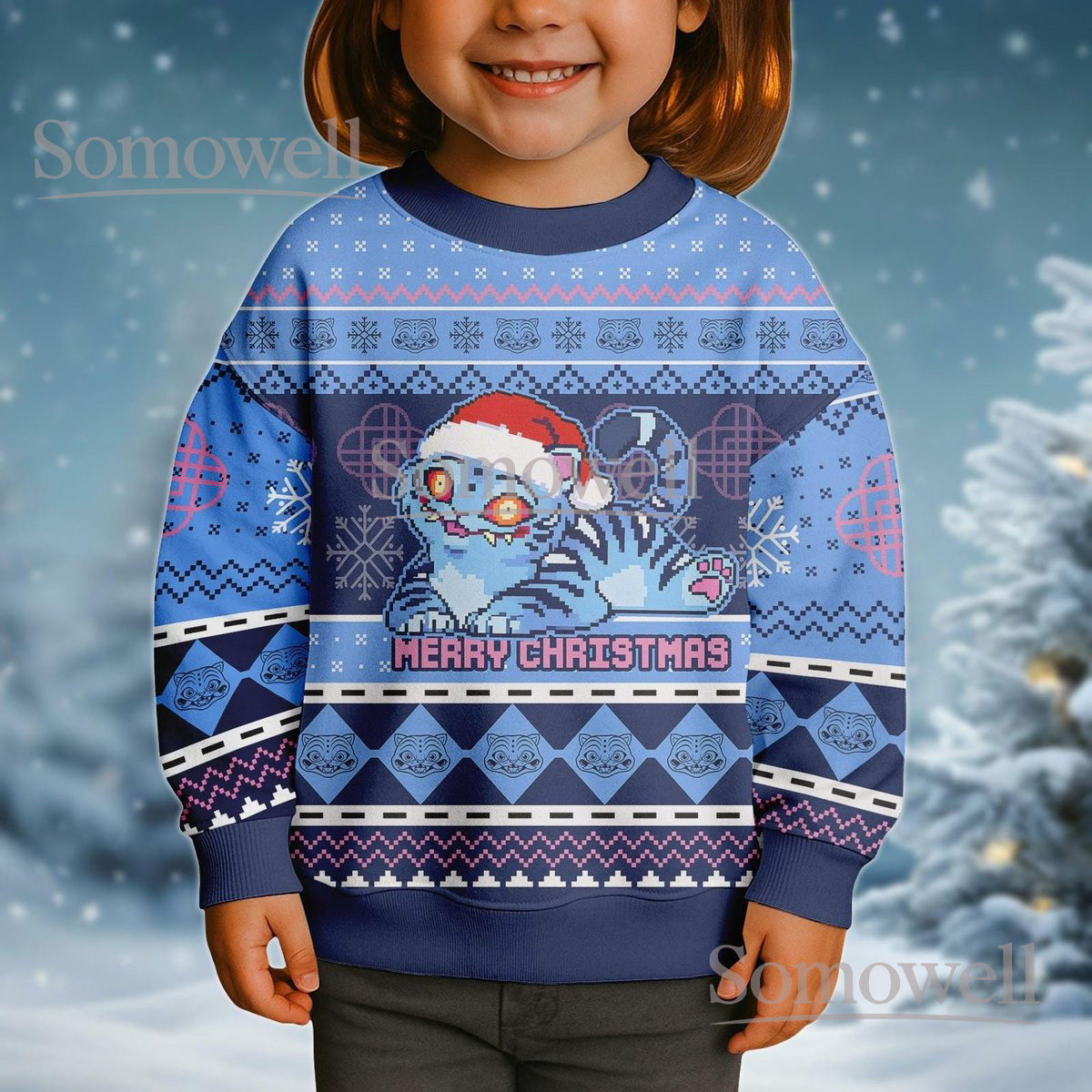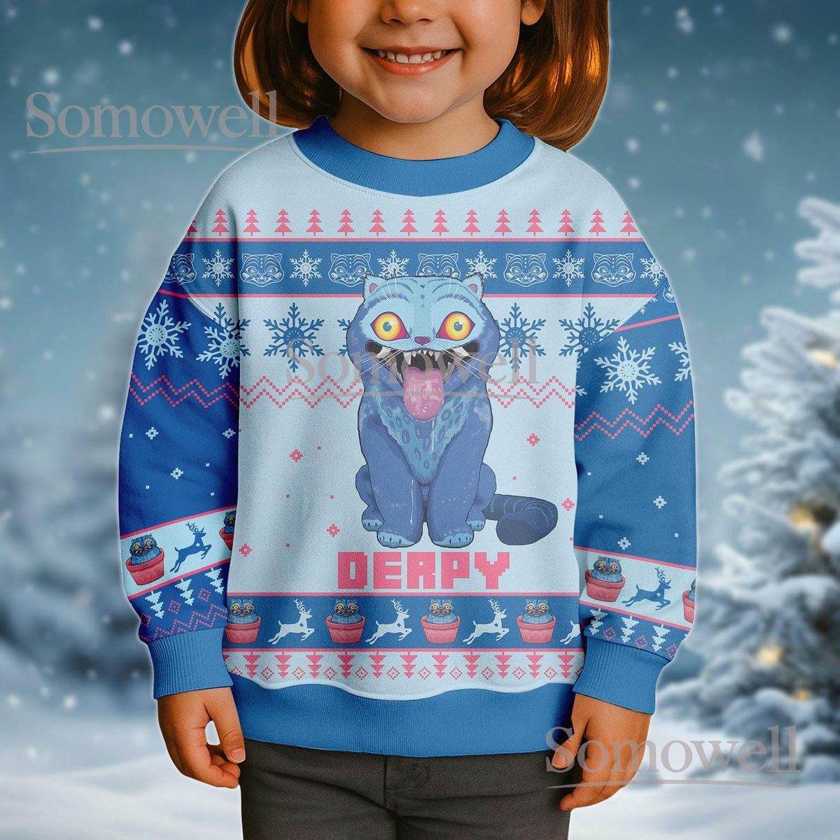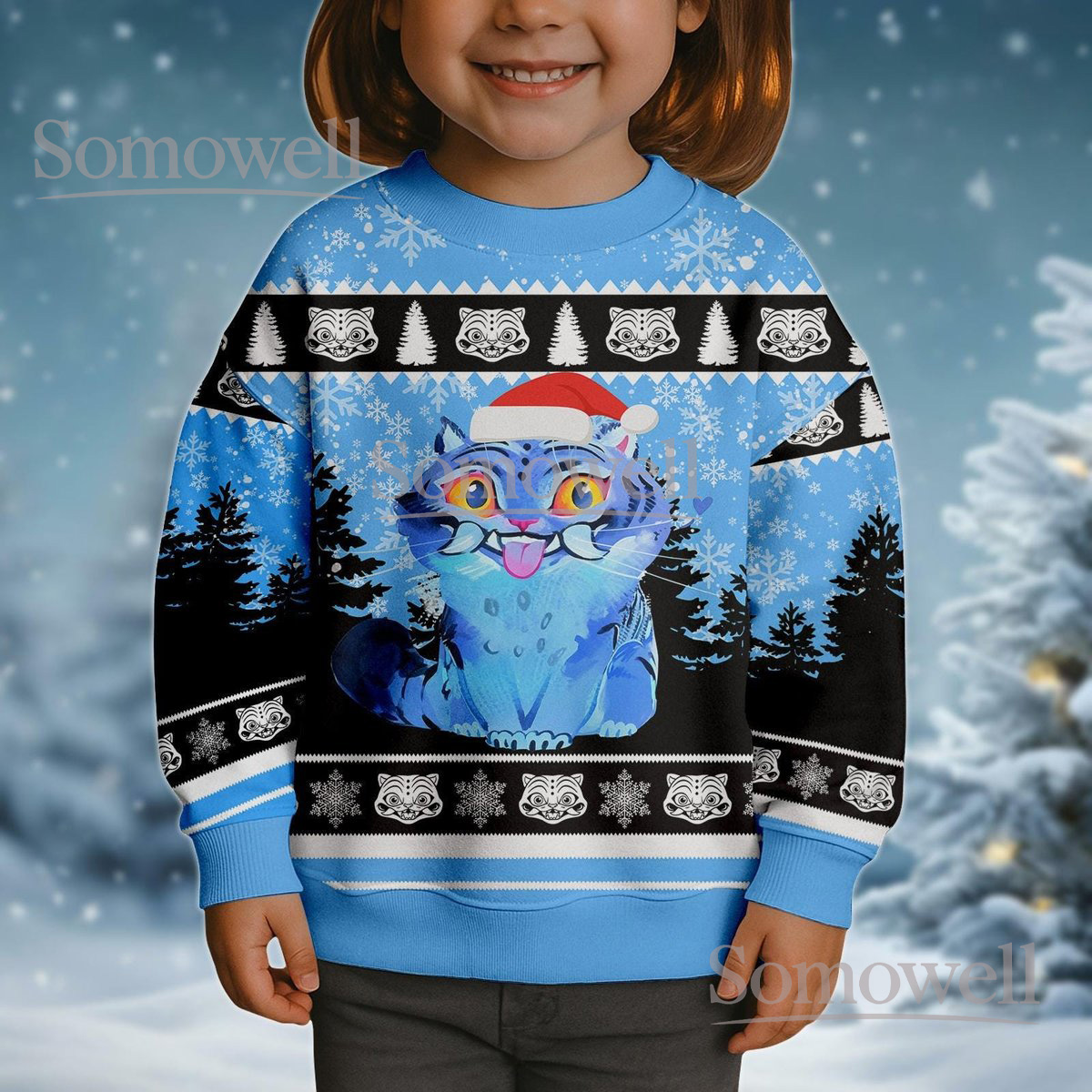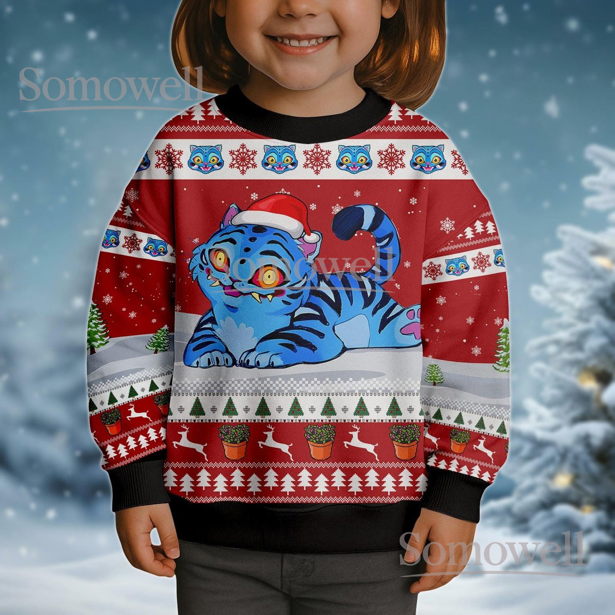 Derpy Tiger Christmas Sweater Funny Blue Cat Ugly Holiday Jumper Gift