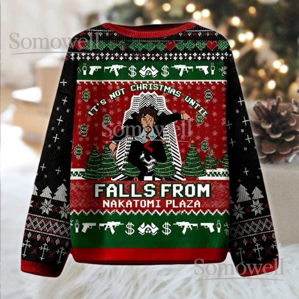 Die Hard Christmas Red Ugly Sweater Nakatomi Plaza Funny Movie Holiday Knit Jumper