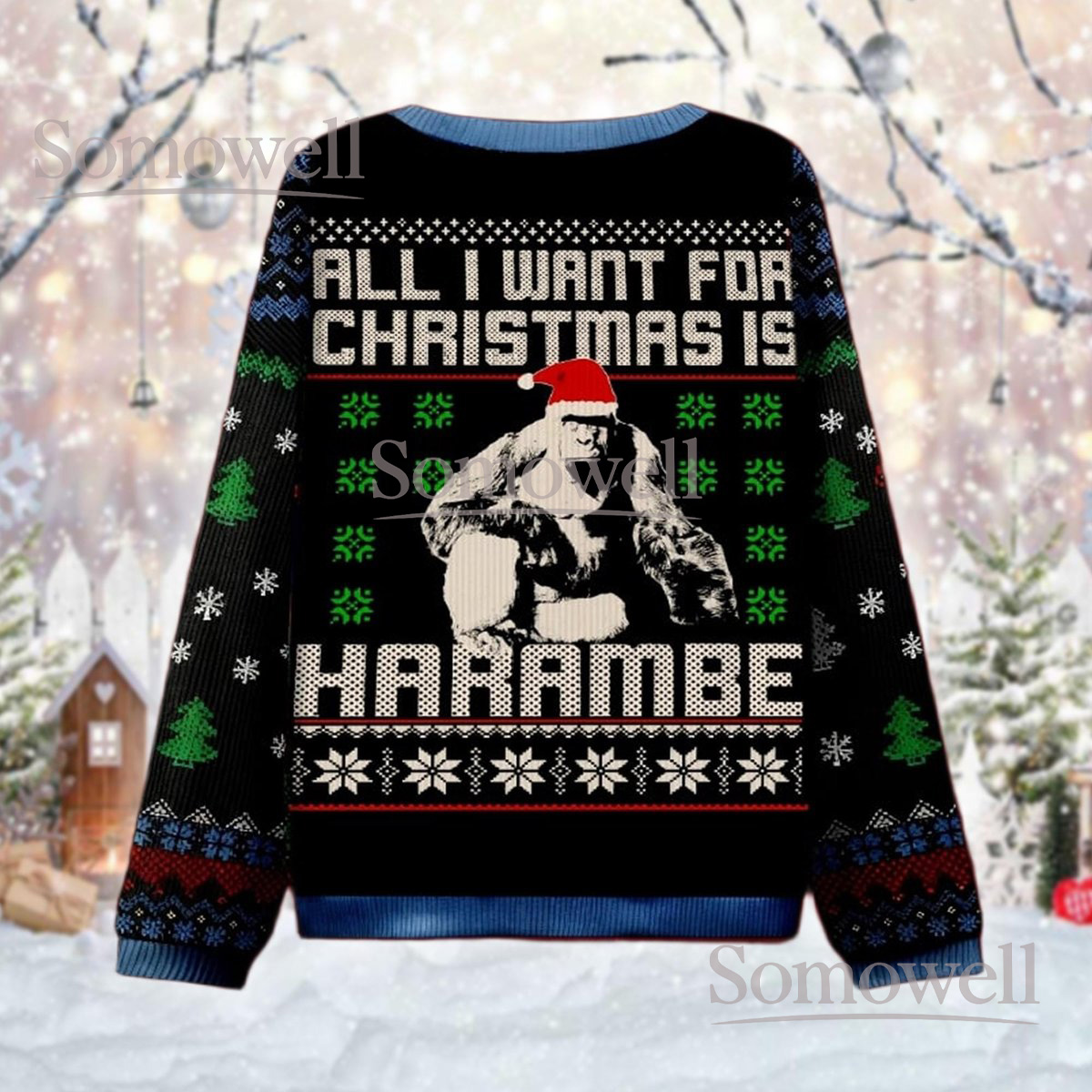 All I Want For Christmas Is Harambe Ugly Sweater Funny Meme Lovers Holiday Gift