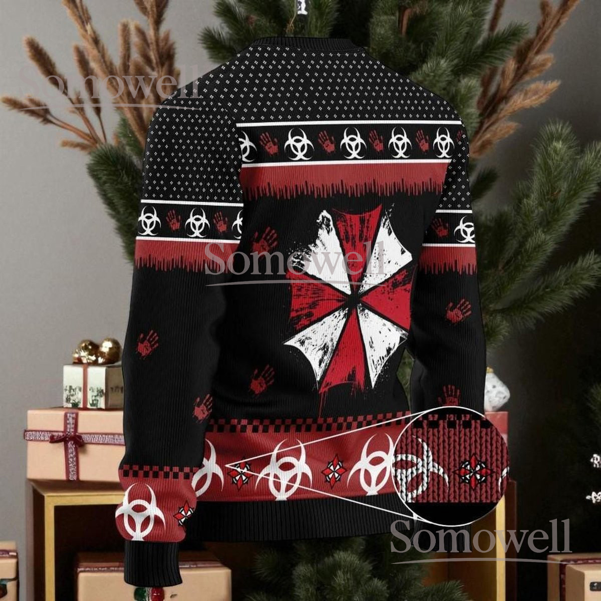 Umbrella Corp Black Red Christmas Ugly Sweater Horror Biohazard Holiday Knit Jumper