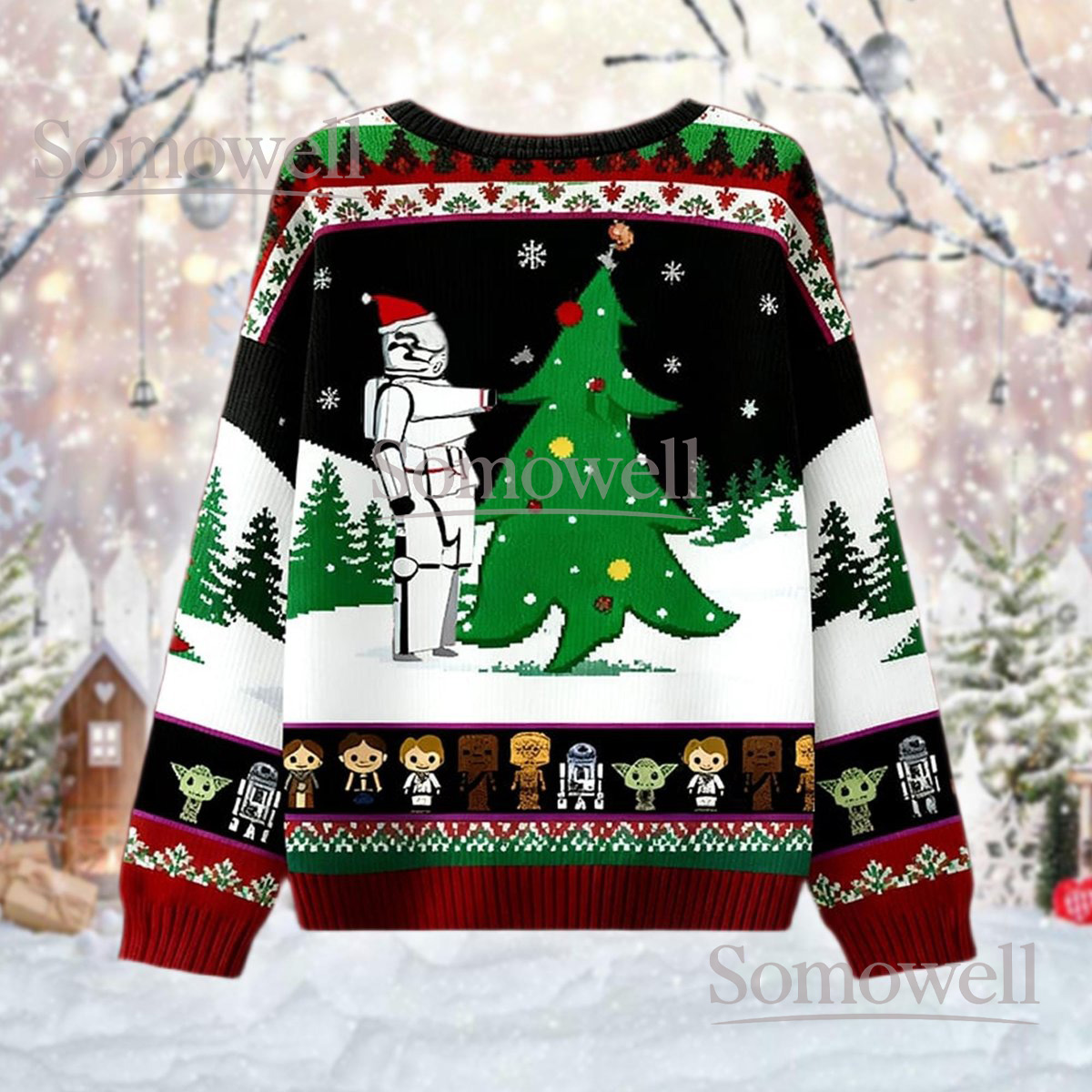 Ugly Sci-Fi Fan Christmas Sweater Tree Decorating Holiday Knit Jumper