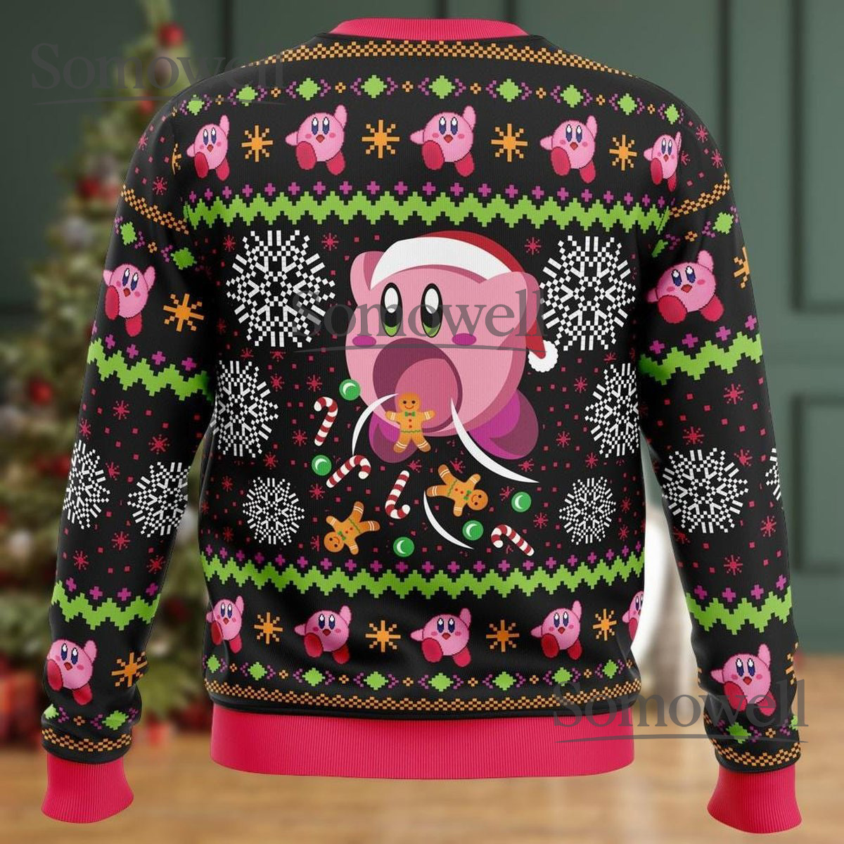 Cute Kirby Pink Hungry Character Ugly Christmas Sweater Gamer Holiday Jumper