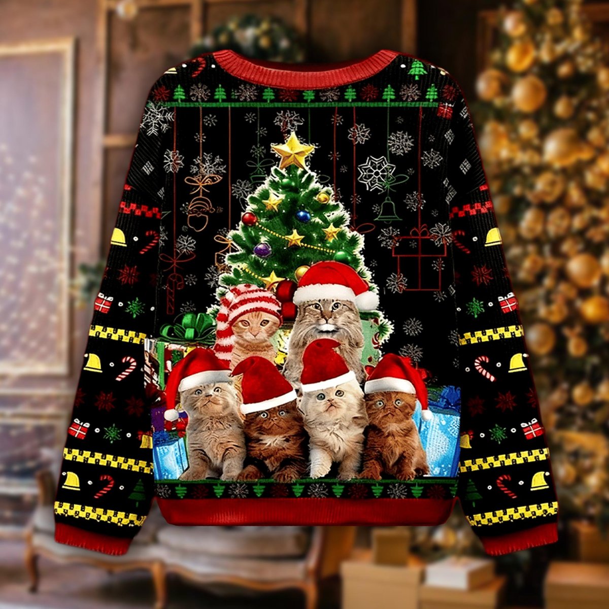 Cute Santa Kittens Christmas Tree Ugly Sweater Cat Lovers Holiday Gift