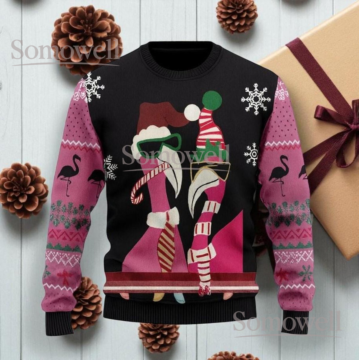 Cool Flamingo Christmas Black Ugly Sweater Tropical Funny Holiday Knit Jumper