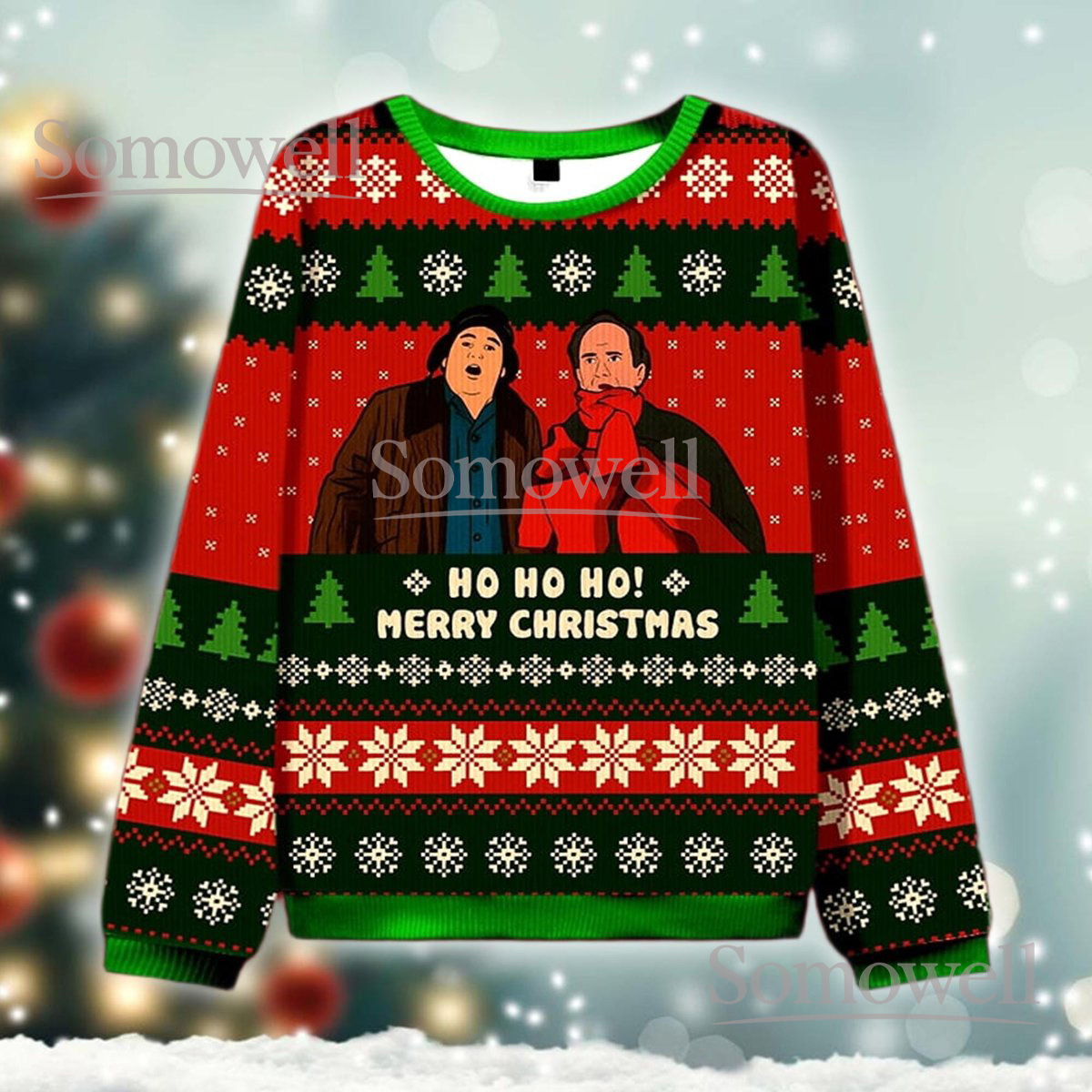 Classic Movie Red Christmas Ugly Sweater Ho Ho Ho Merry Christmas Holiday Knit Jumper Retro Film Gift
