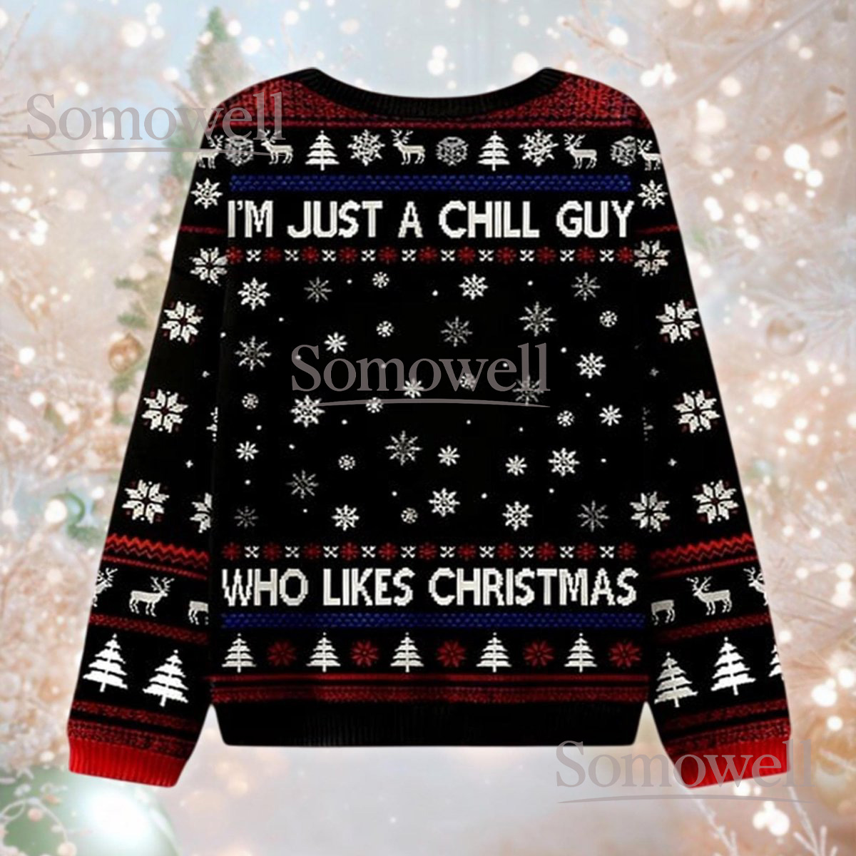Chill Guy Ugly Christmas Sweater Funny Cartoon Meme Holiday Gift
