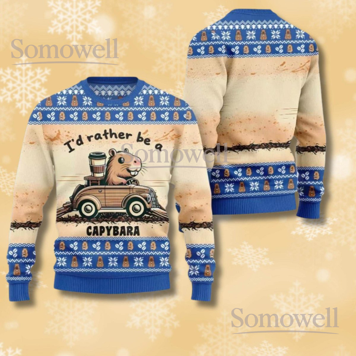 Capybara Christmas Beige Ugly Sweater Vintage Car Graphic Funny Holiday Knit Jumper