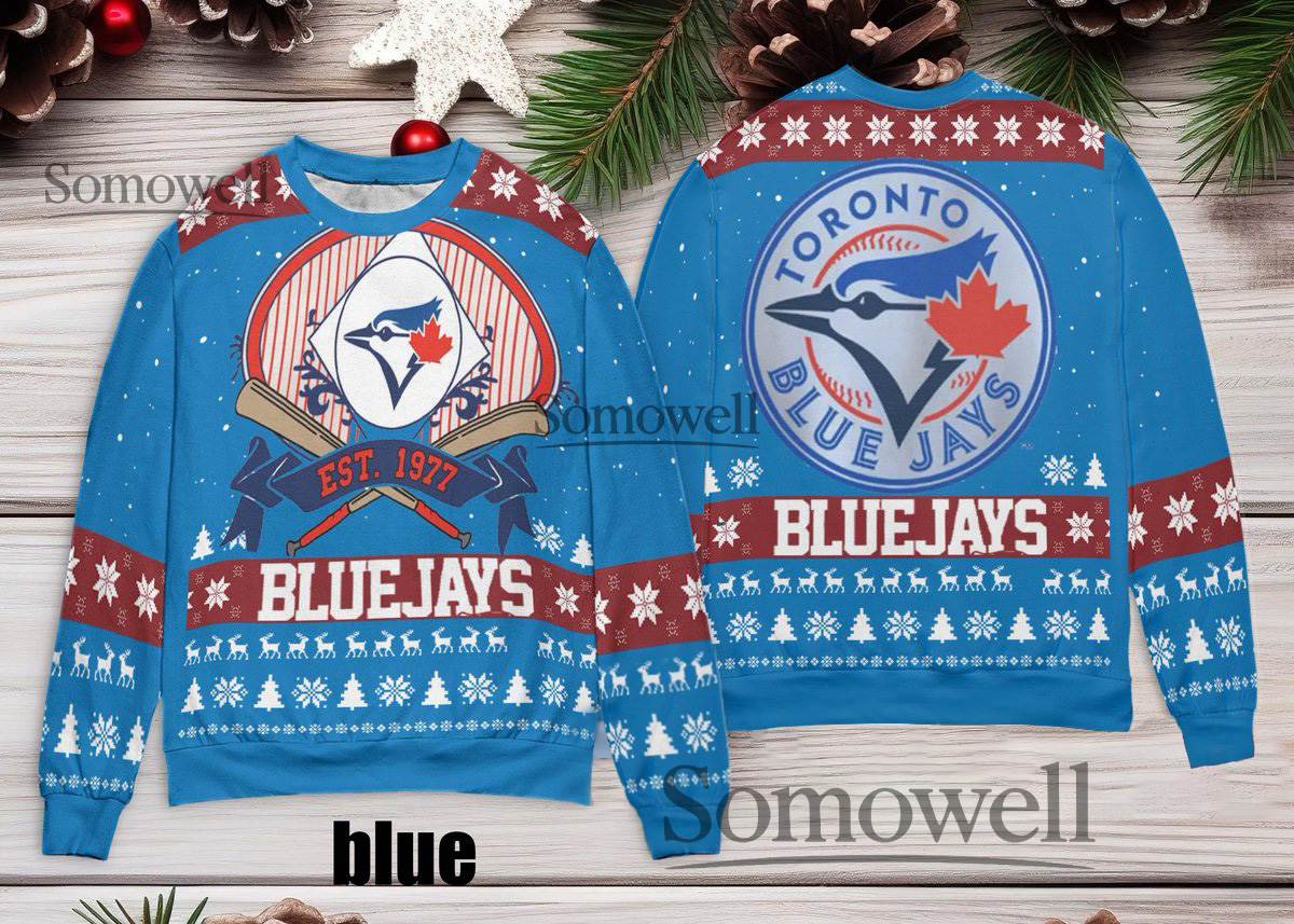 Toronto Blue Jays Logo Est 1977 Ugly Christmas Sweater Vintage Baseball Holiday Edition Multi Color Edition
