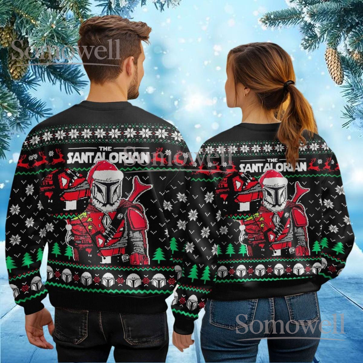 The Santalorian Ugly Christmas Sweater Funny Baby Yoda Star Wars Parody Holiday Knit Jumper Gift