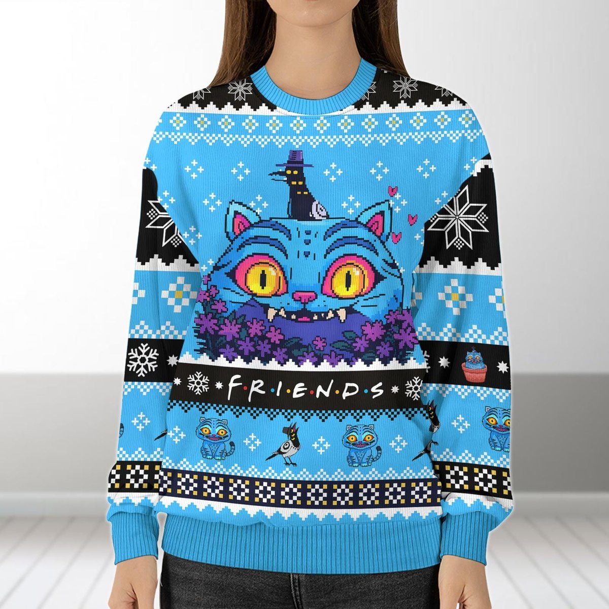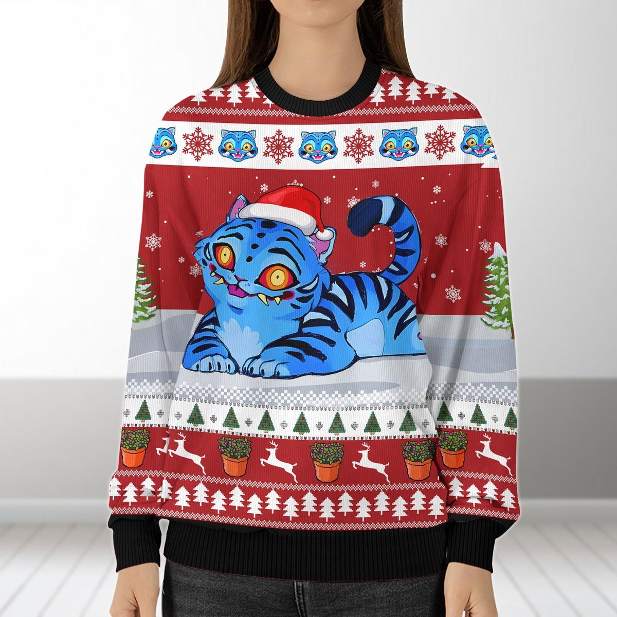 Derpy Tiger Christmas Sweater Funny Blue Cat Ugly Holiday Jumper Gift