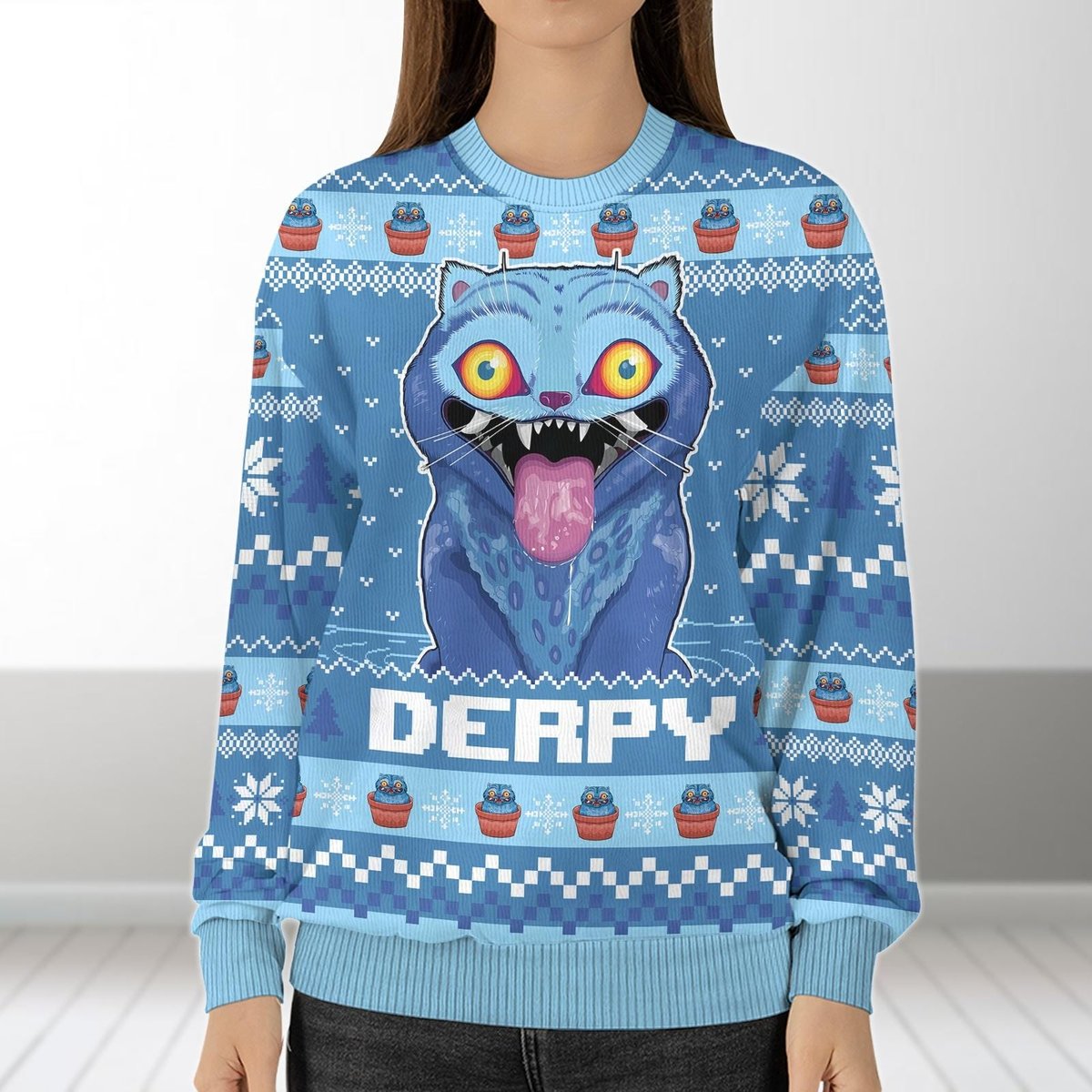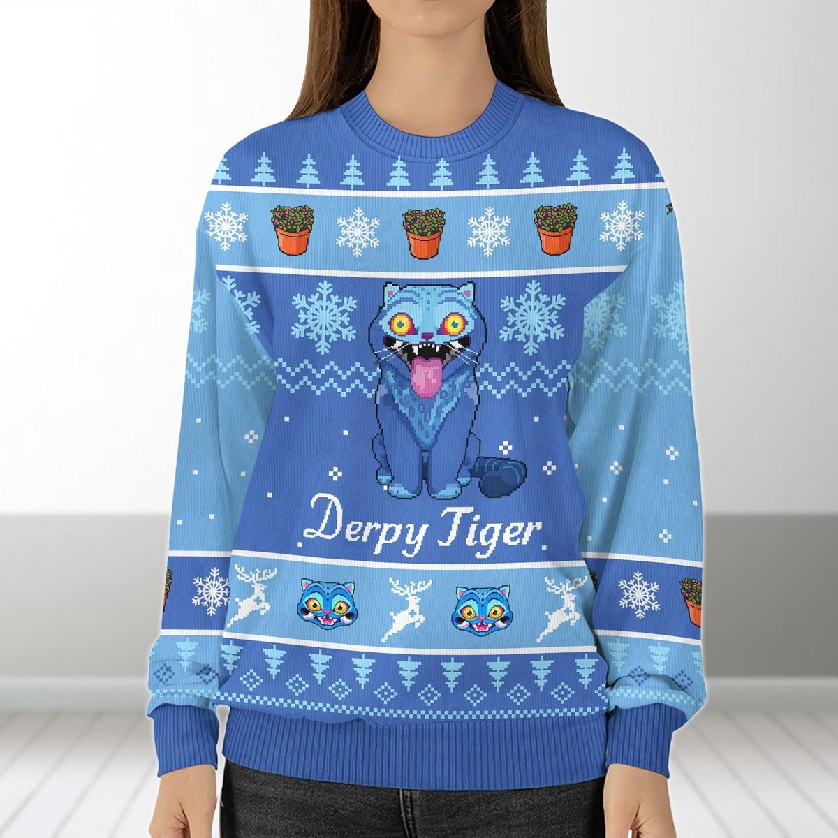 Derpy Tiger Ugly Sweater Cute Cat Lovers Funny Christmas Holiday Gift