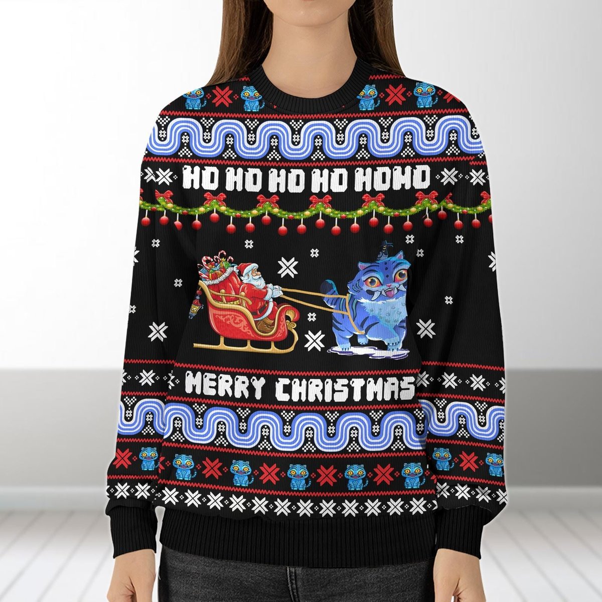 Derpy Tiger With Santa Sleigh Ugly Sweater Funny Cat Lovers Christmas Gift