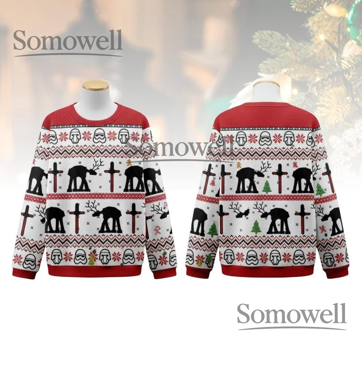 AT AT Walker Star Wars Christmas Sweater Reindeer Pattern Funny Holiday Pullover