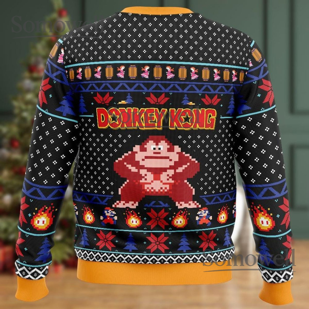 Donkey Kong Pixel Black Ugly Christmas Sweater Retro Gamer Holiday Knit Gift
