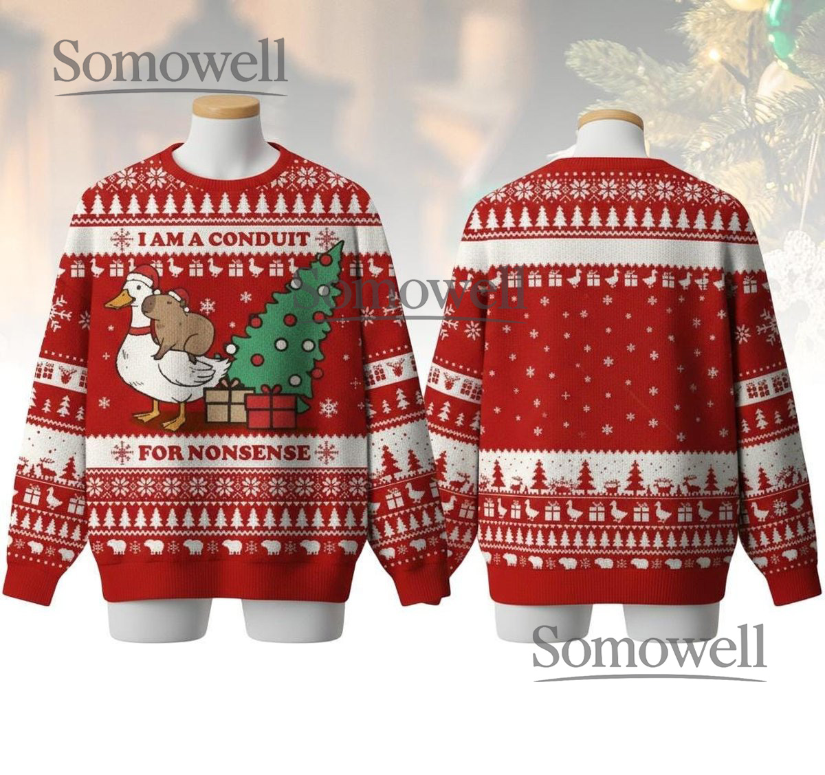 Duck and Capybara Christmas Sweater Funny Animal Holiday Knit Gift