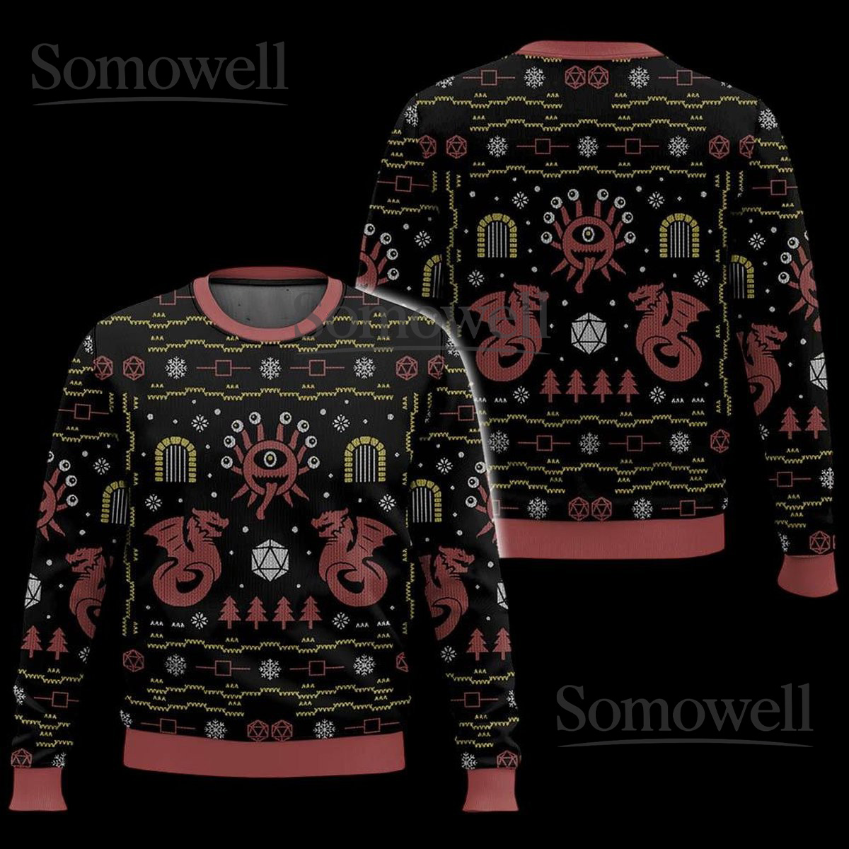 Dungeons and Dragons Monster Pattern Ugly Christmas Sweater Fantasy Knit Jumper