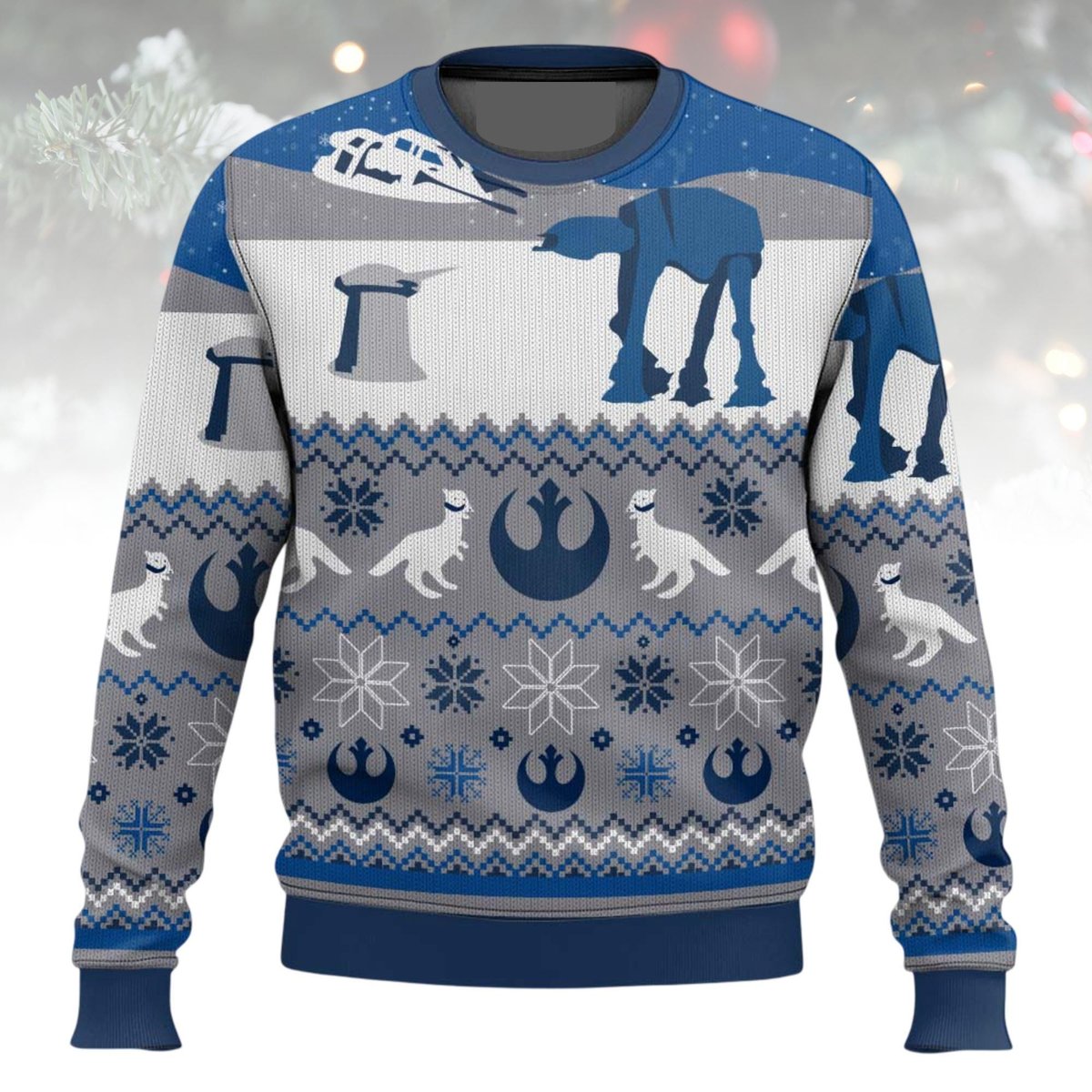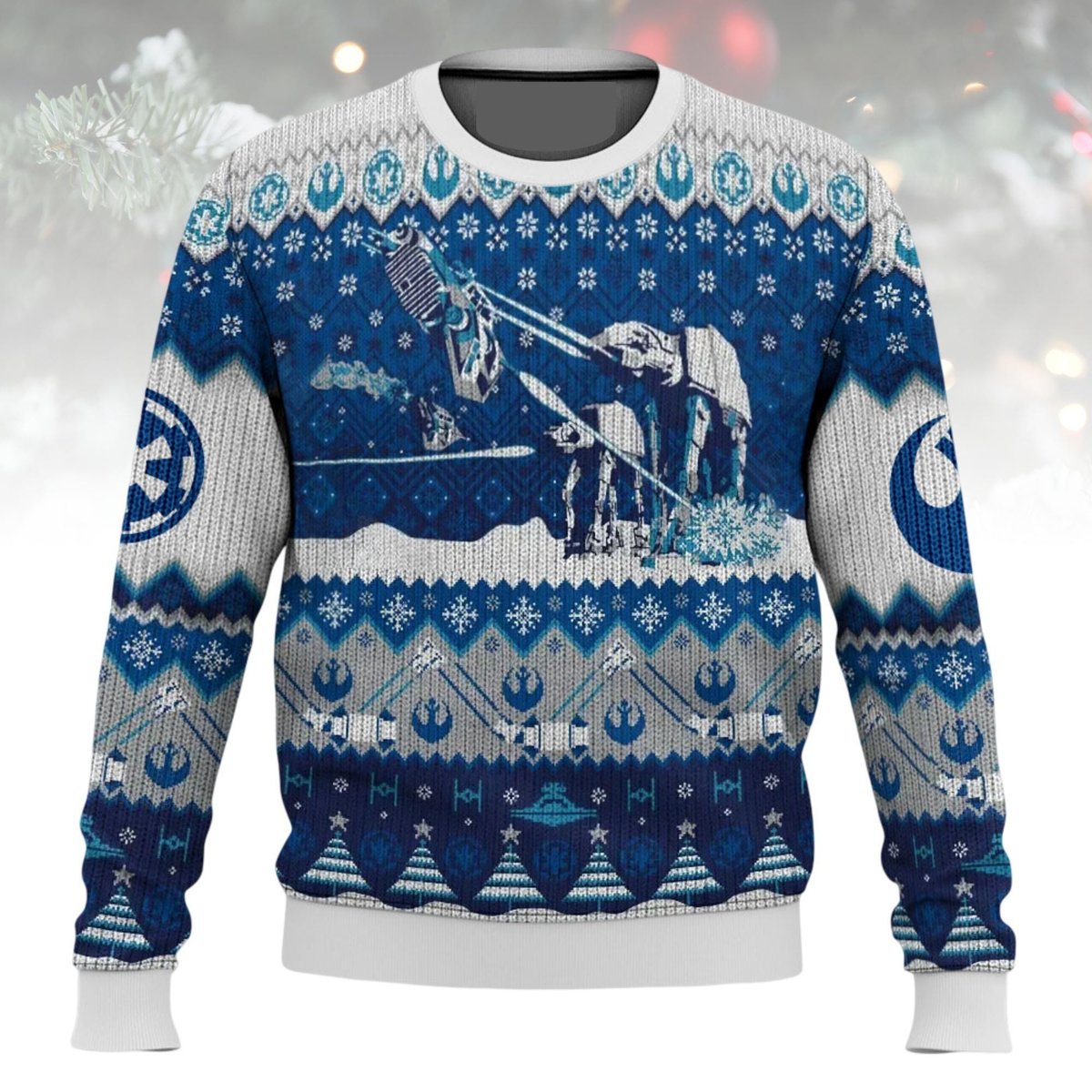 AT-AT Walker Blue Star Wars Hoth Scene Ugly Christmas Sweater Holiday Knit Gift