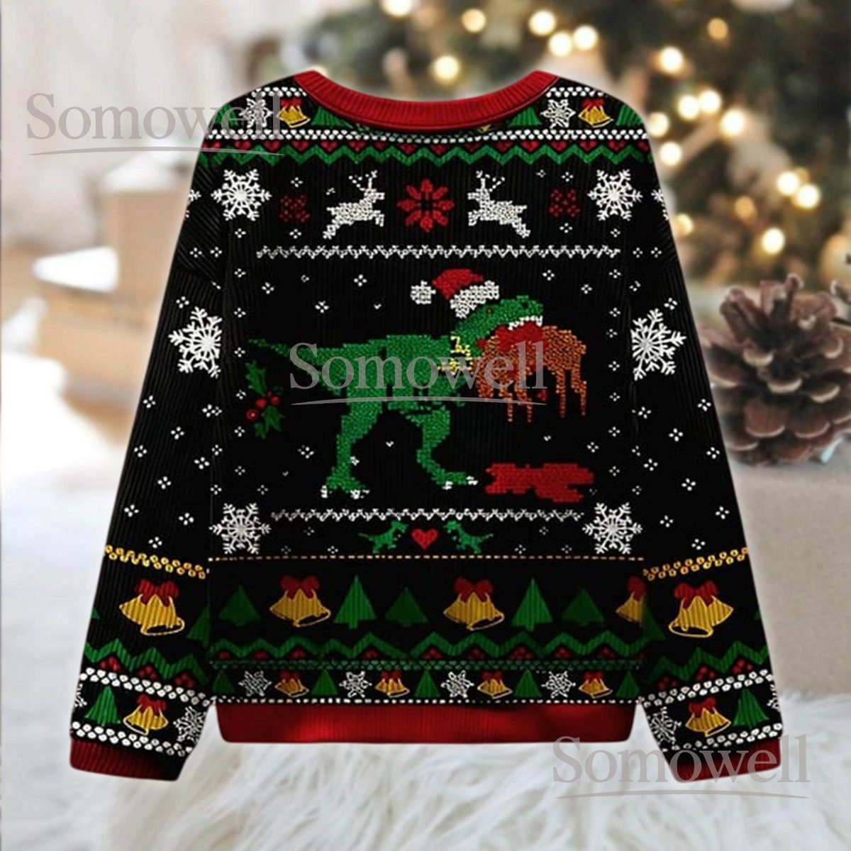 T-Rex Eating Reindeer Ugly Christmas Sweater Funny Dinosaur Holiday Gift