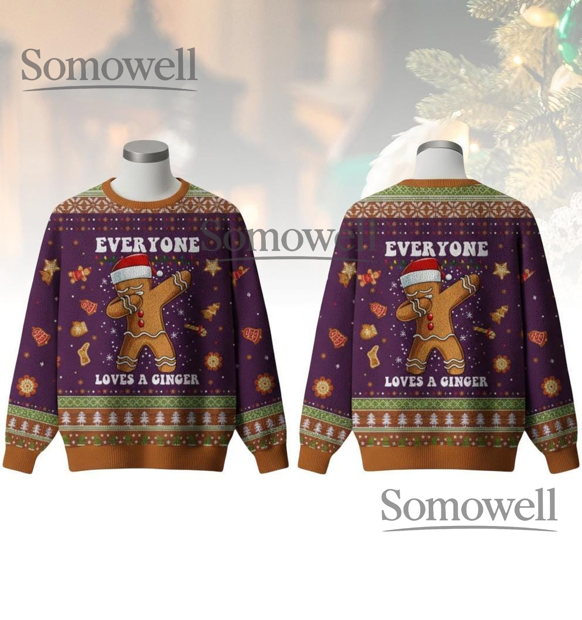 Everyone Loves A Ginger Funny Gingerbread Christmas Sweater Green Knit