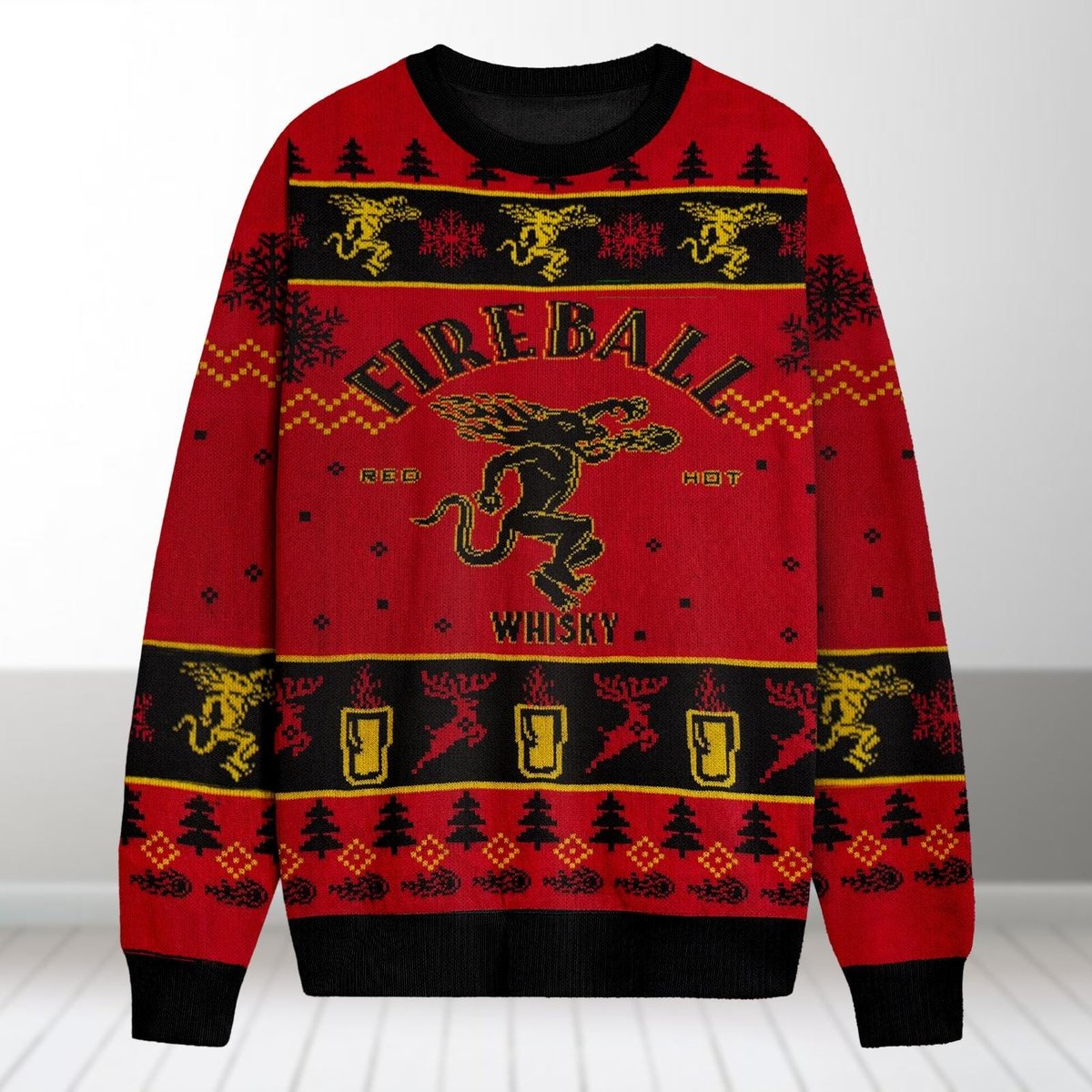 Fireball Whisky Knit Ugly Sweater Funny Drink Lovers Christmas Holiday Gift