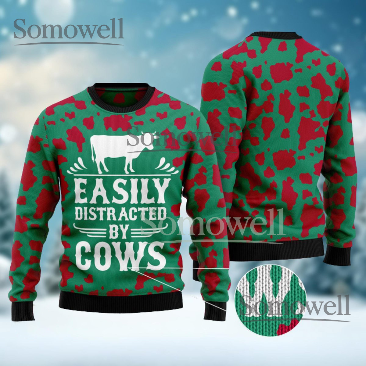 Funny Cows Christmas Ugly Sweater Custom Print Holiday Pullover