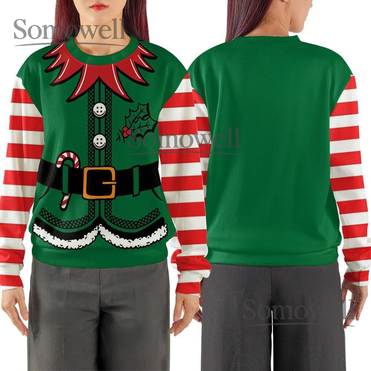 Funny Elf Ugly Sweater Family Matching Christmas Knitted Sweater Cozy Winter Gift