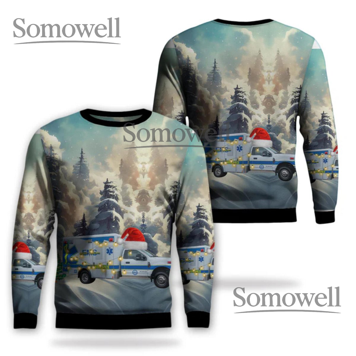 Funny EMS Ambulance Christmas Sweater Paramedic Santa Hat Holiday Sweatshirt