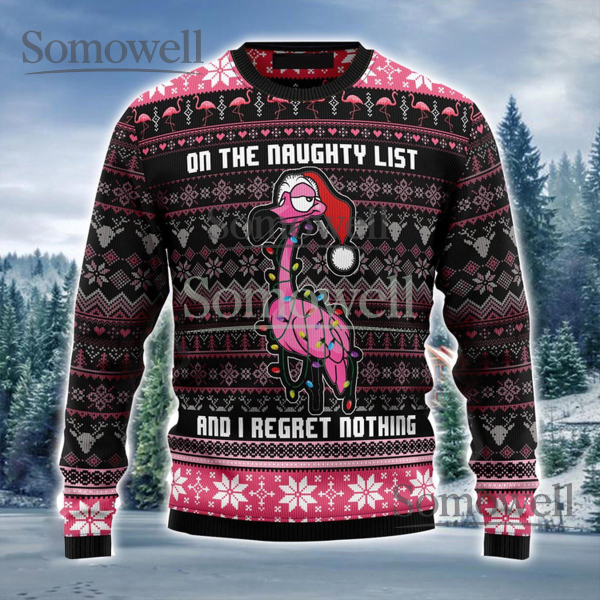 Funny Flamingo Ugly Christmas Sweater Custom Holiday Pullover