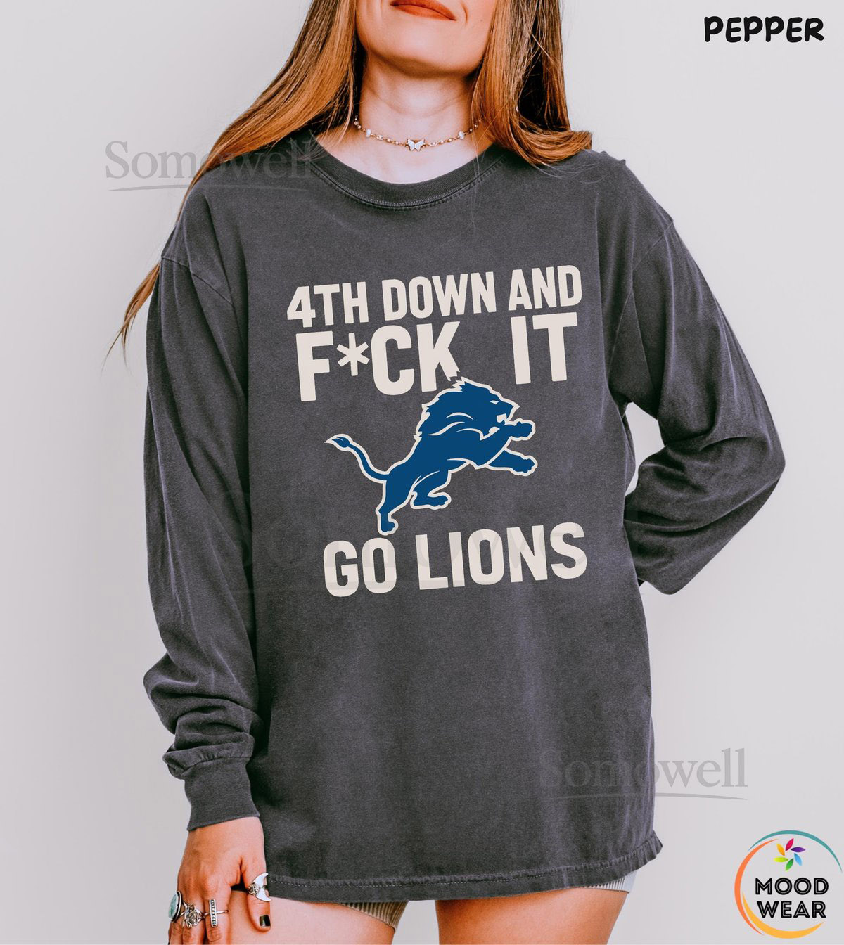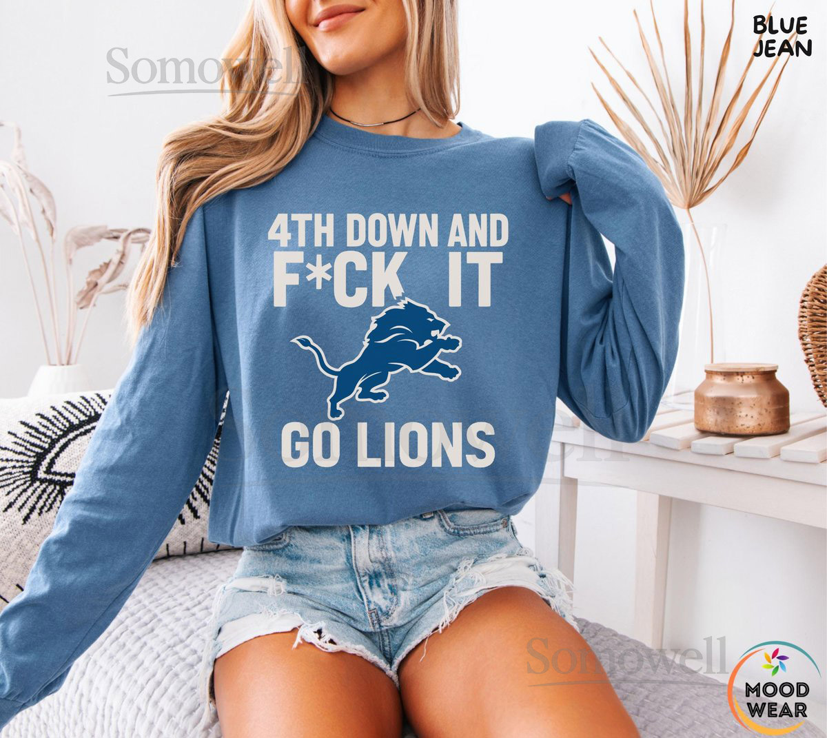 4th Down and Fck It Go Lions T-Shirt Comfort Colors Detroit Football Watch Party Sweatshirt Football Fan Tee Detroit Football Spirit Wea_4