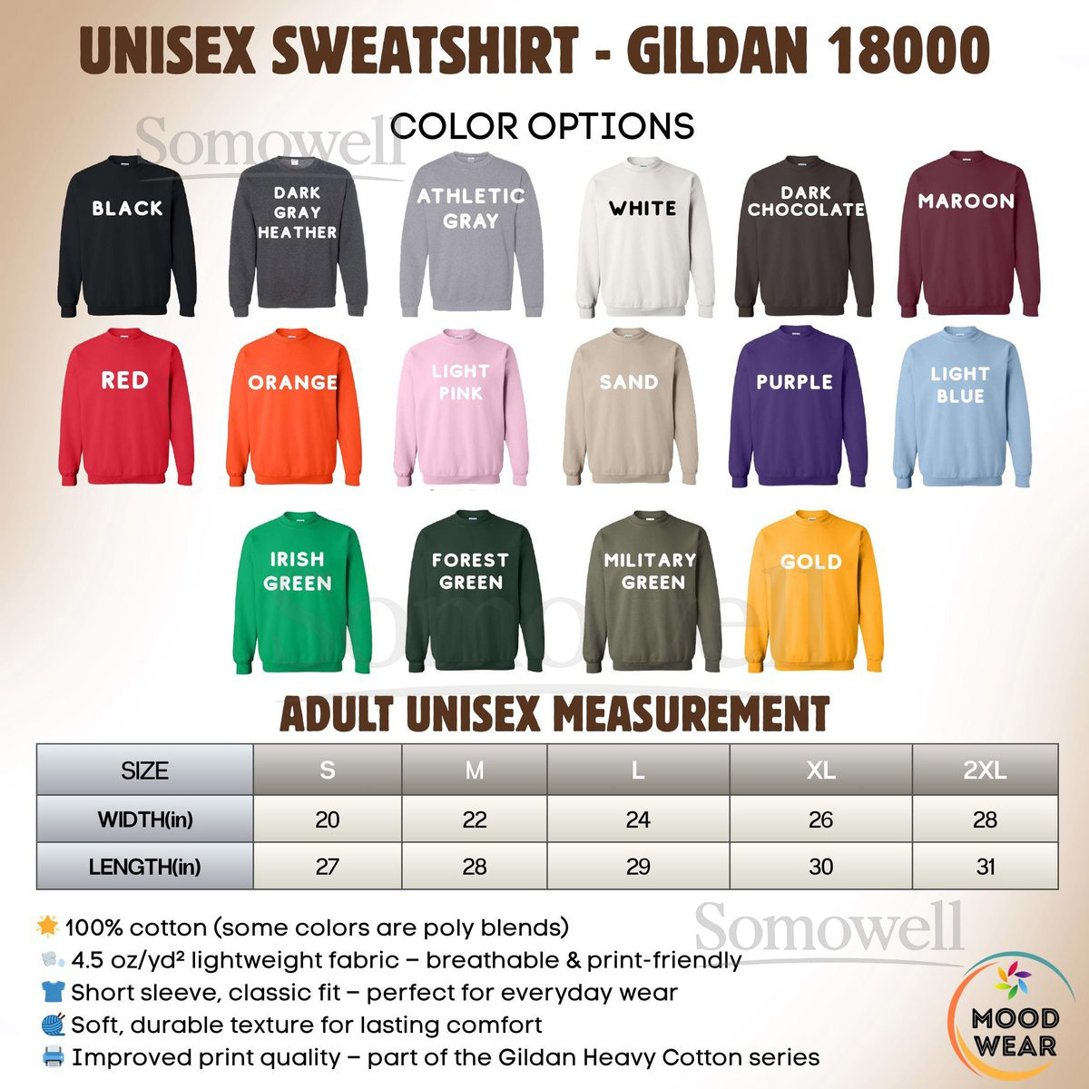 The Gildan 18000 sweatshirt is crafted from a soft cotton–polyester blend that delivers cozy warmth and durability. It features a classic fit and medium-heavy fabric, making it ideal for layering, lounging, or adding a relaxed streetwear touch to your everyday outfit.