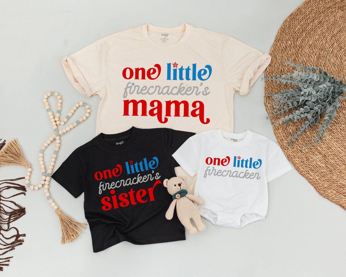 4th of July 1st Birthday Matching Shirts One Little Firecracker Fourth of July Birthday Outfit Dad a 167
