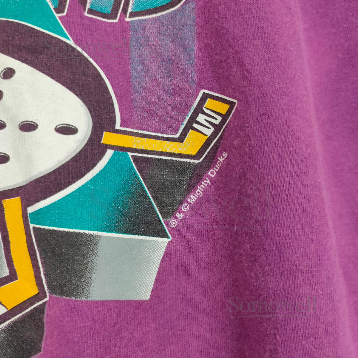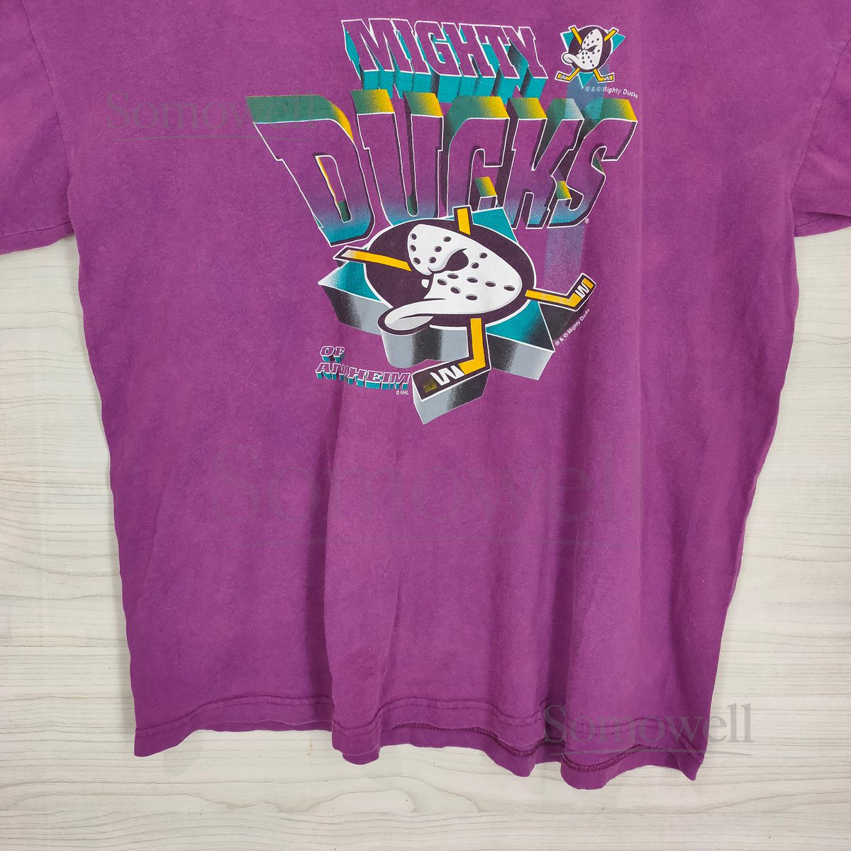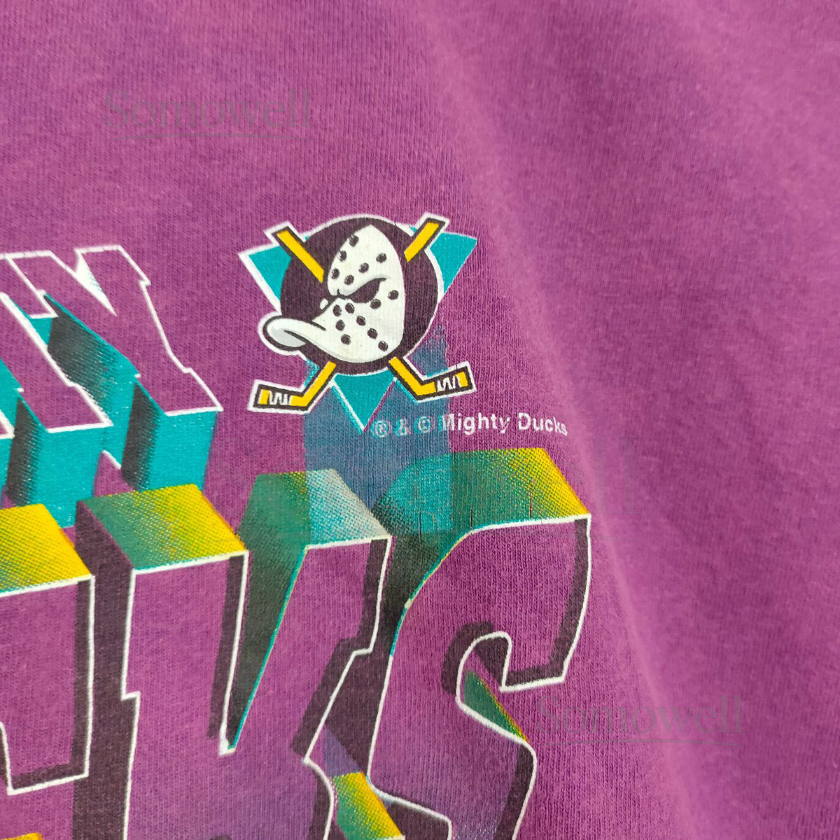 90s Anaheim Duck Short Length Tee Large Vintage NHL Hockey Tshirt Purple Womens Size L_5