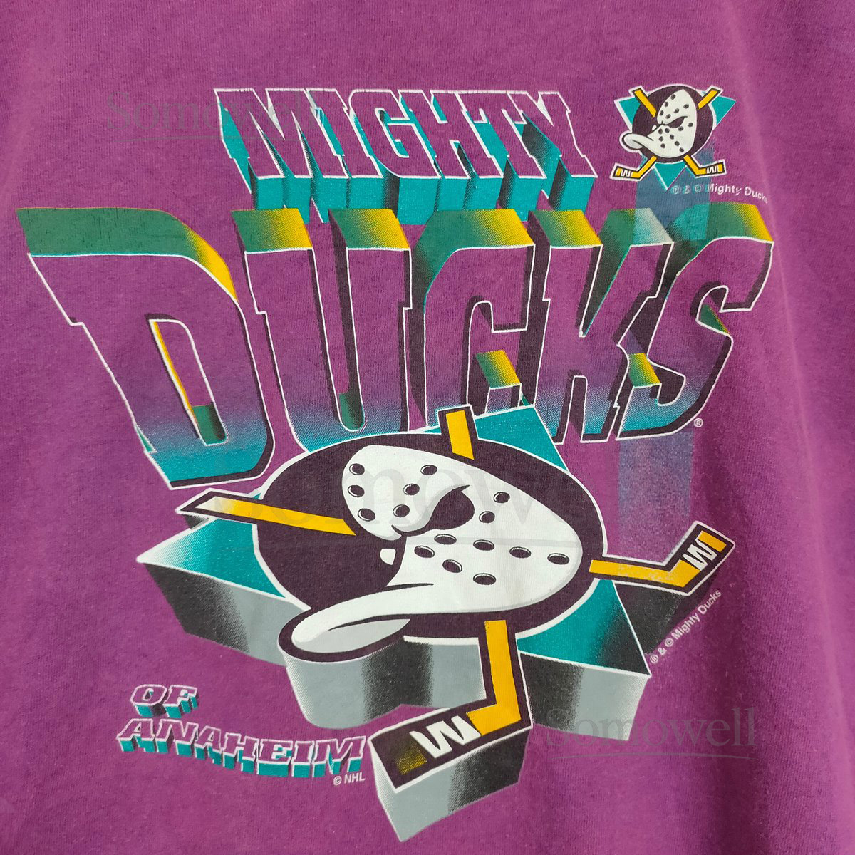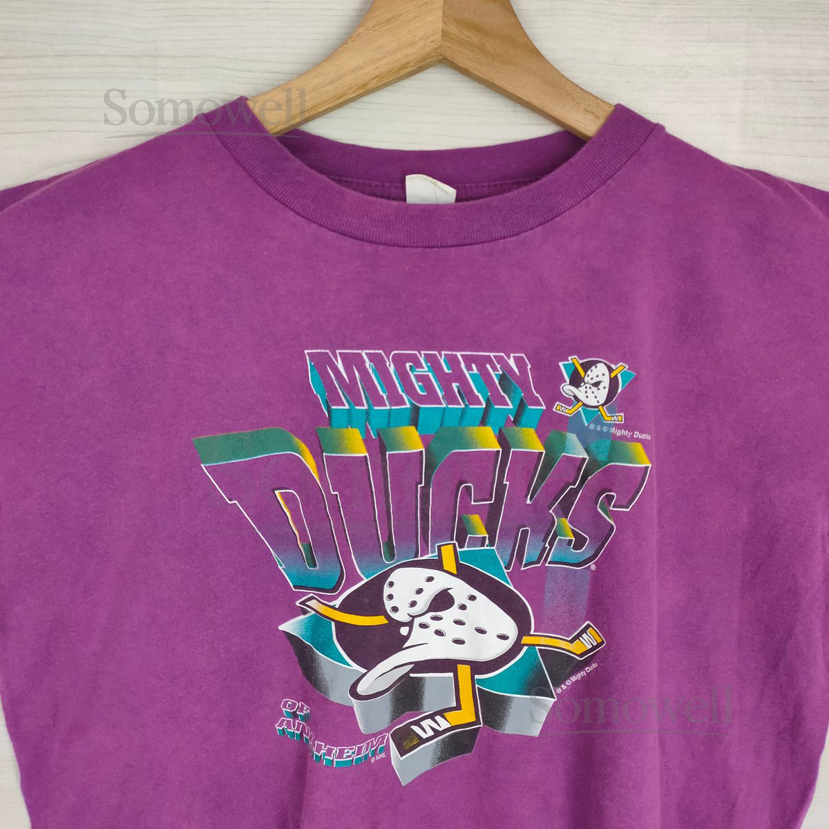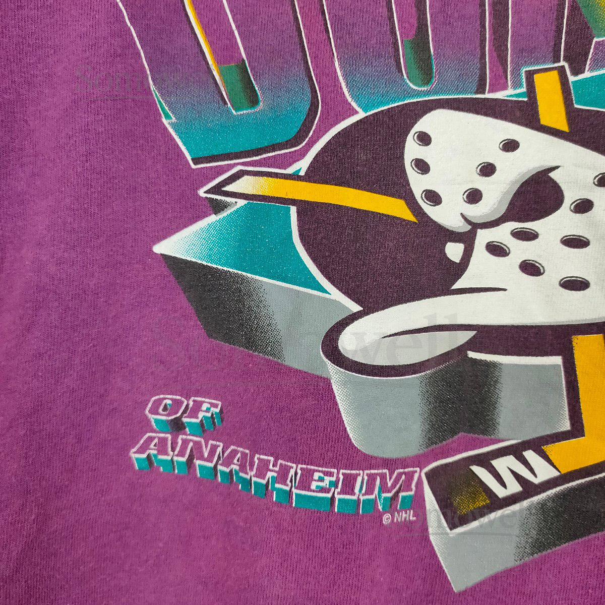 90s Anaheim Duck Short Length Tee Large Vintage NHL Hockey Tshirt Purple Womens Size L_5