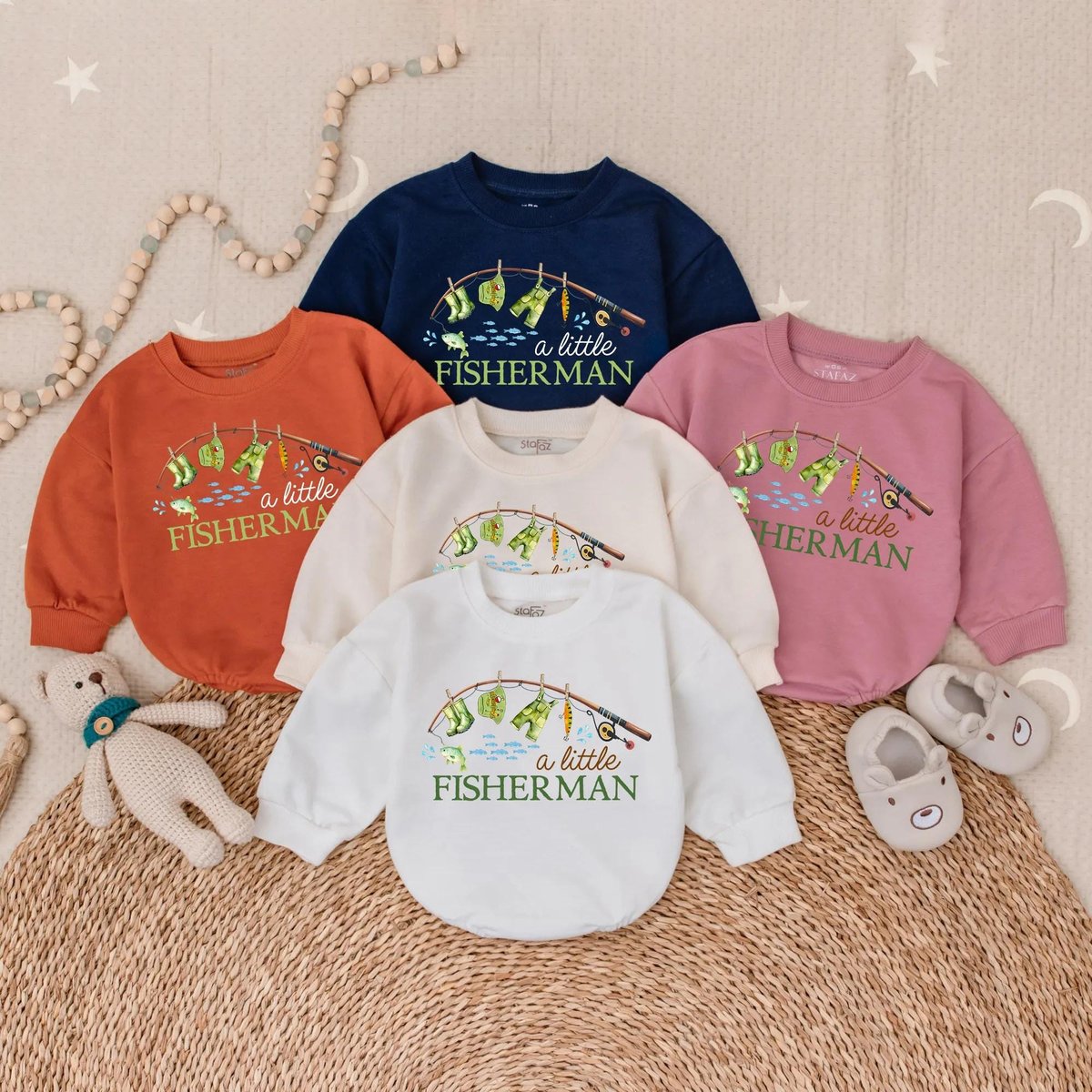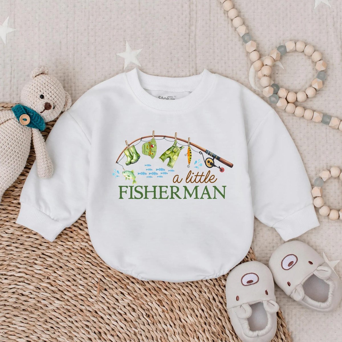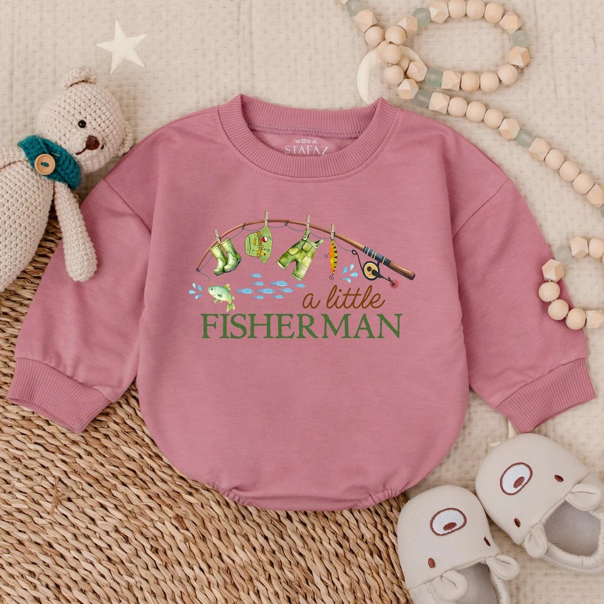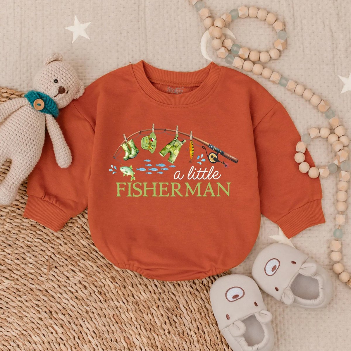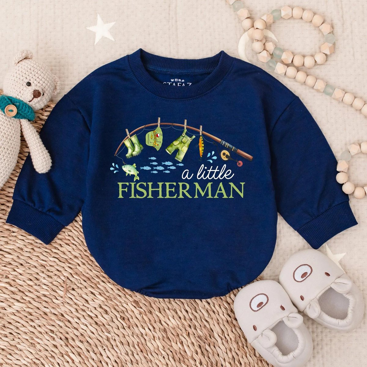 A Little Fisherman Bubble Romper Fishing Baby Boy Outfit Outdoor Infant Clothes Toddler Bodysuit Cut