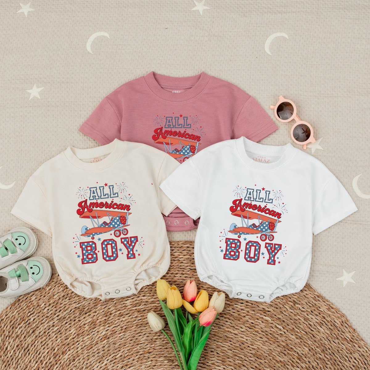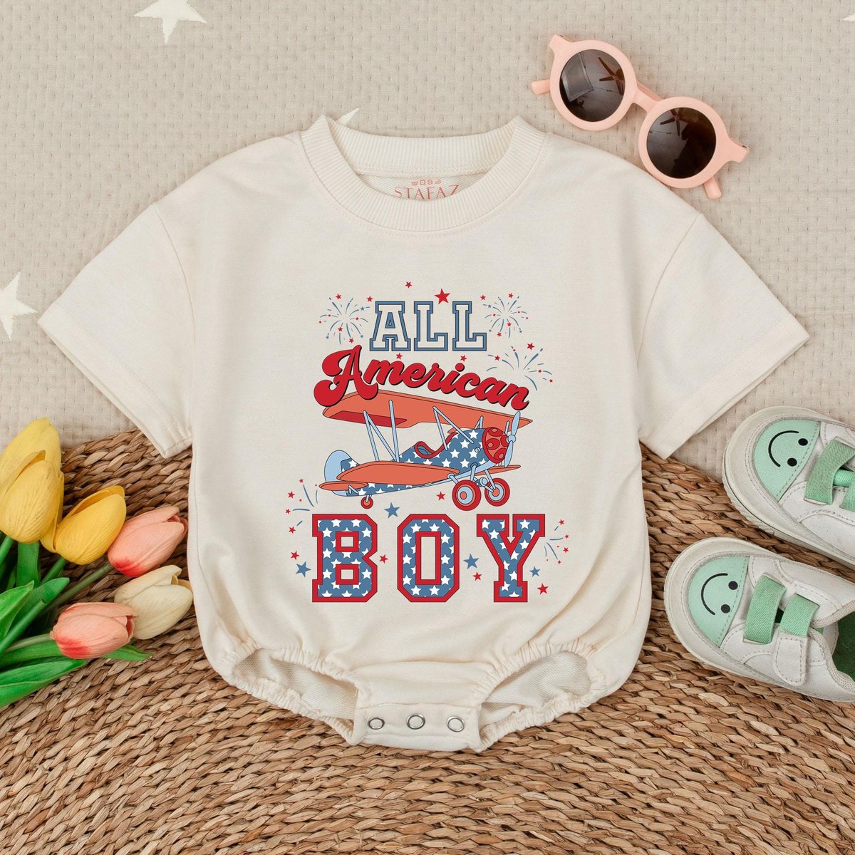 All America Boy Retro Baby Romper Patriotic Baby Boy Bubble Romper 4th of July Bodysuit Baby Clot 187