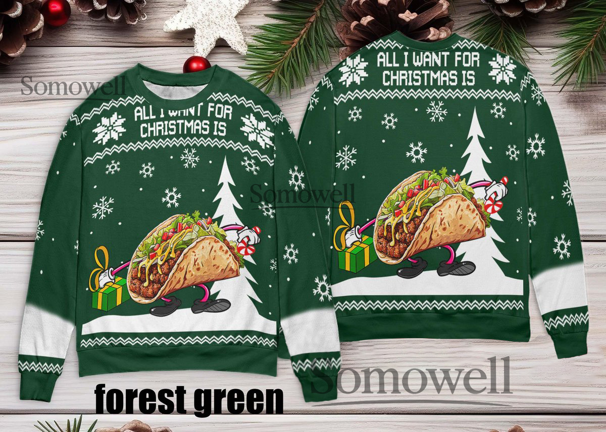 All I Want For Christmas Is Taco Funny Food Ugly Christmas Sweater Black Red Festive Edition Multi Color Edition