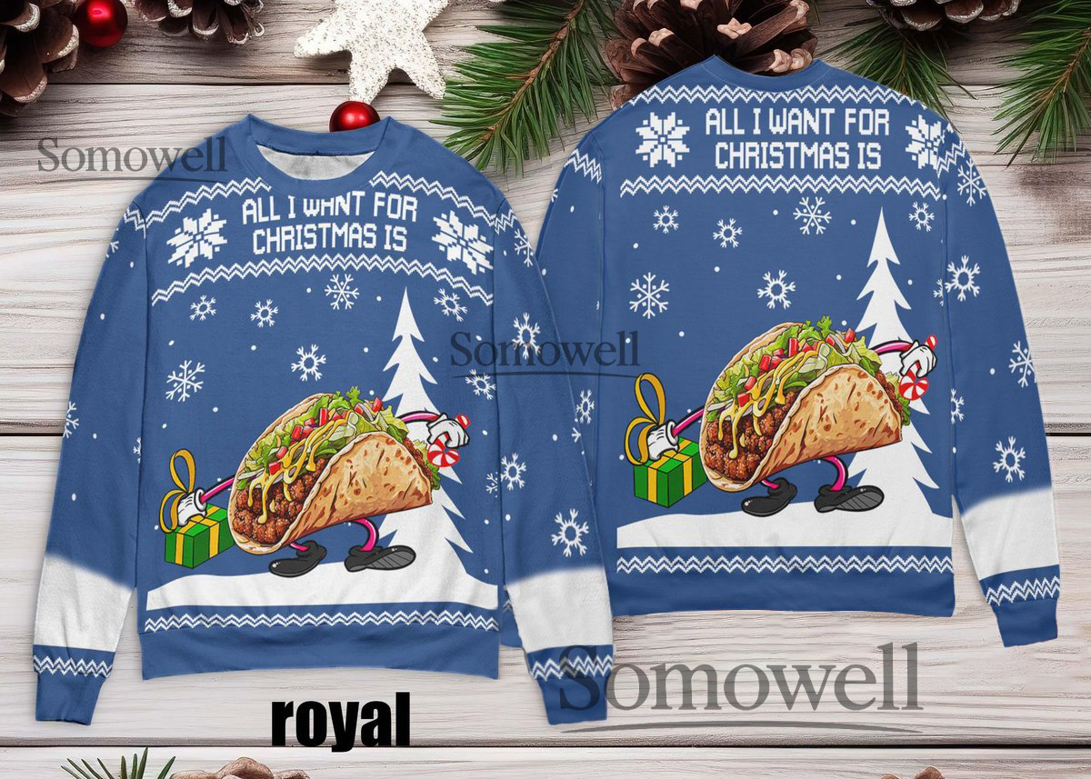 Be the first to review “All I Want For Christmas Is Taco Funny Food Ugly Christmas Sweater Black Red Festive Edition Multi Color Edition”