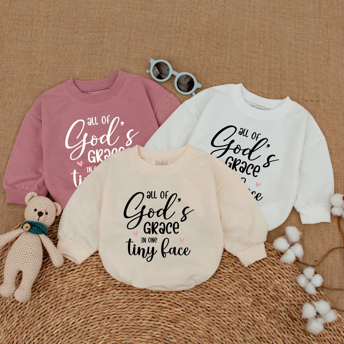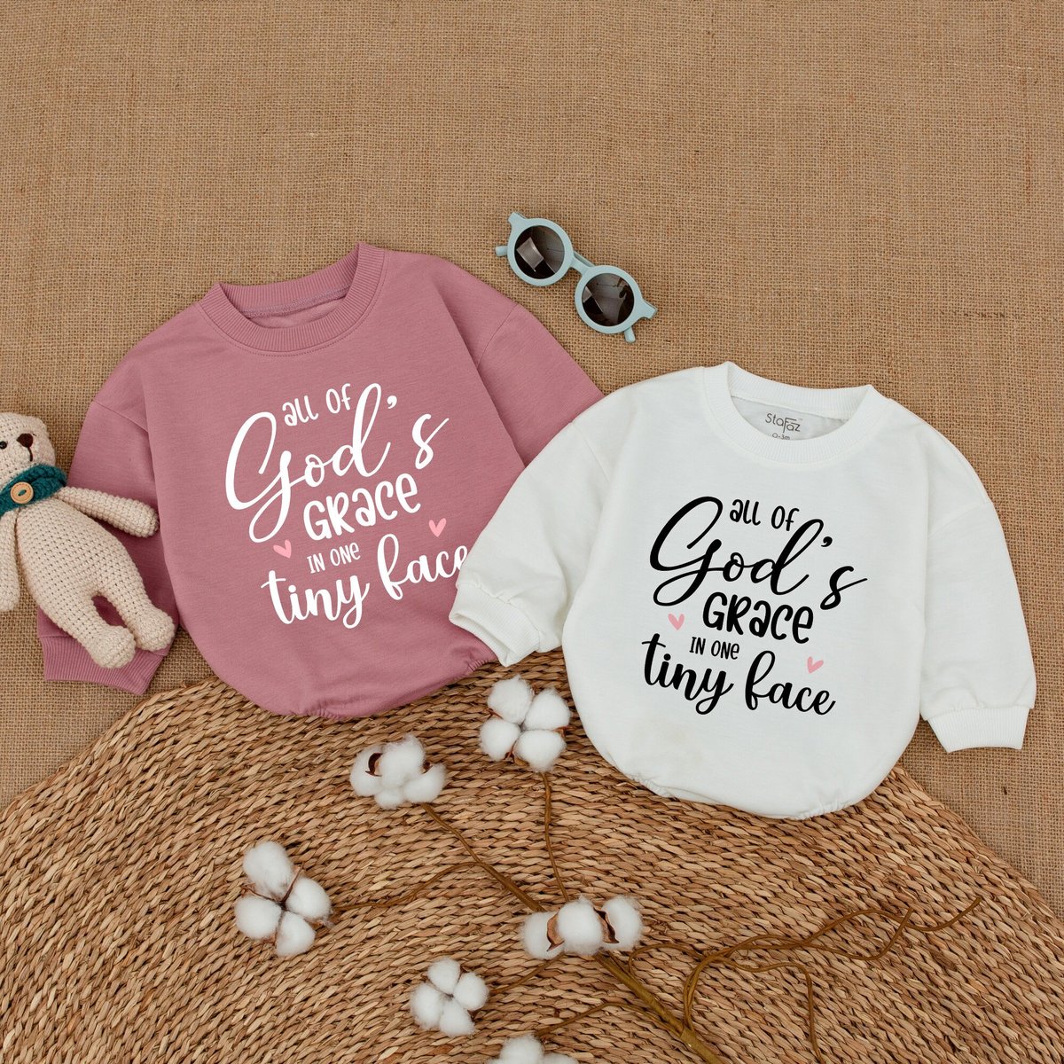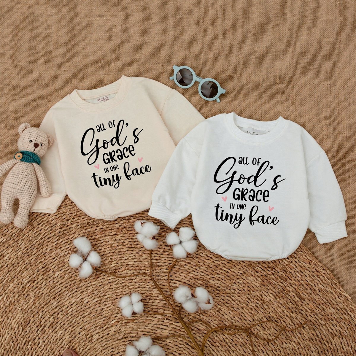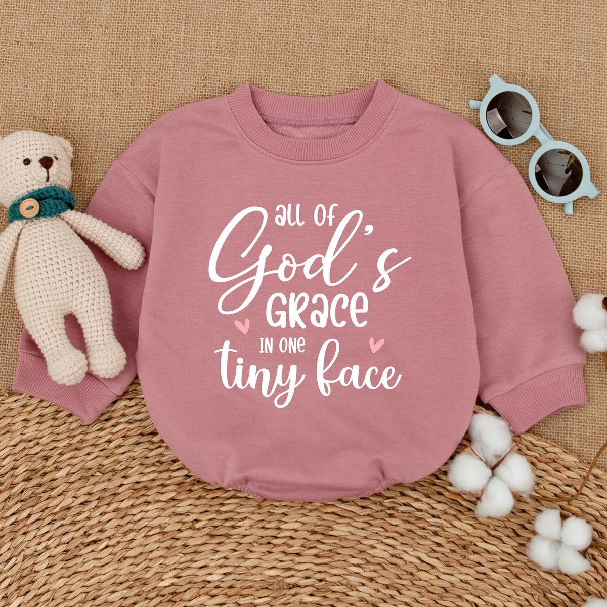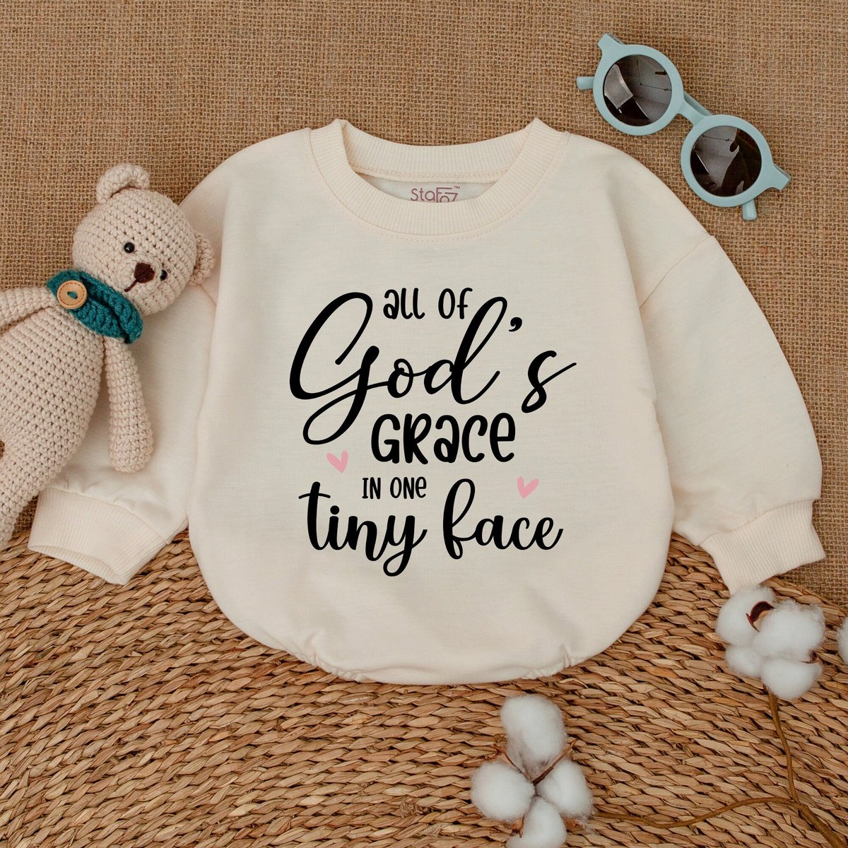 All Of God’s Grace In One Tiny Face Romper Religious Baby Bodysuit Newborn Bubble Romper Pregnancy 171