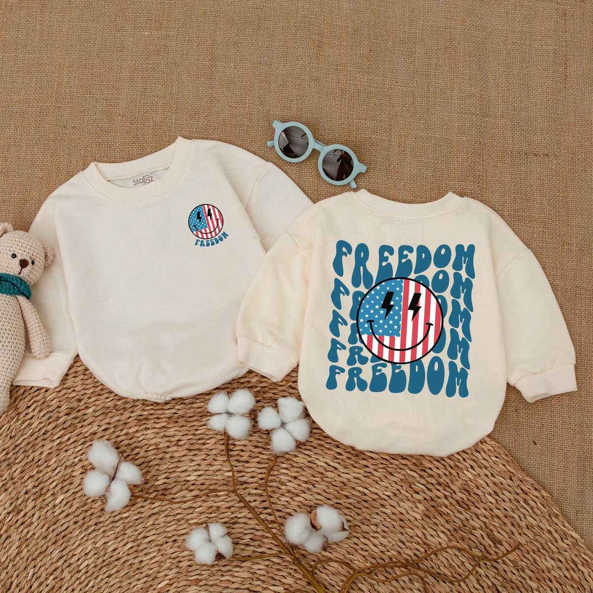 America Freedom Baby Romper Smile Face Baby Bodysuit 1st 4th Of July Outfit 4th of July Clothes Inde 170