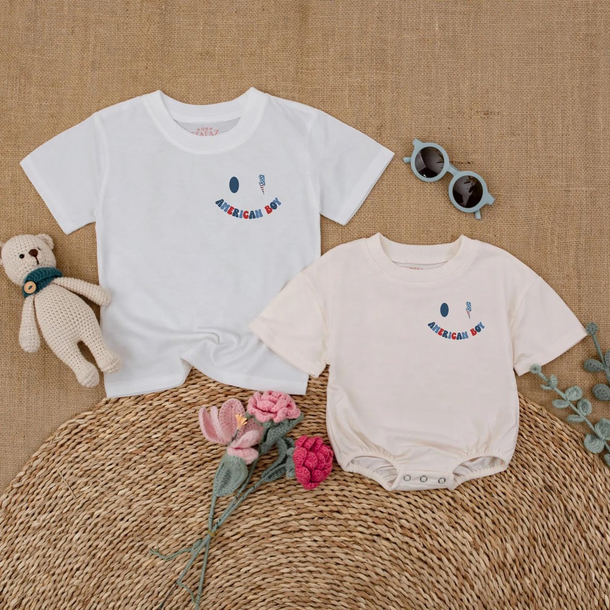 American Boy Baby Romper 4th of July Baby Bodysuit Patriotic Bubble Romper for Baby Boy Independence 429