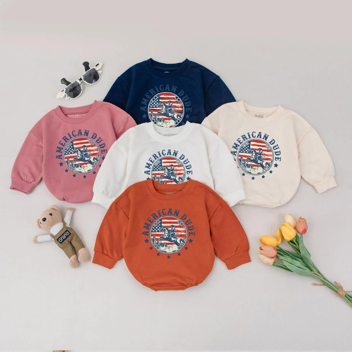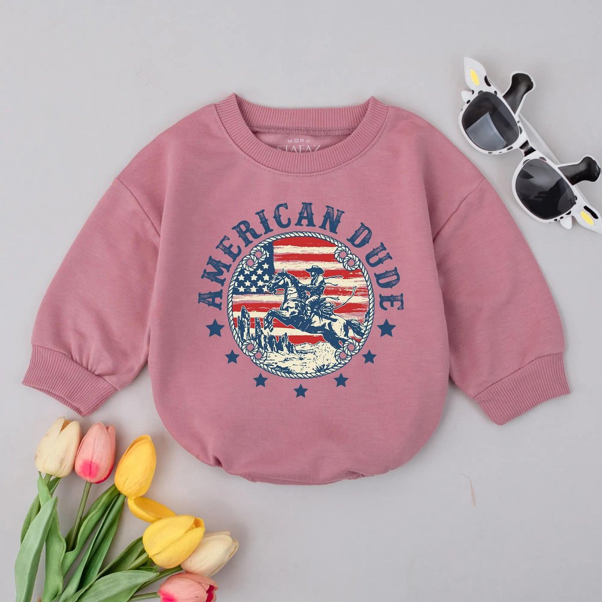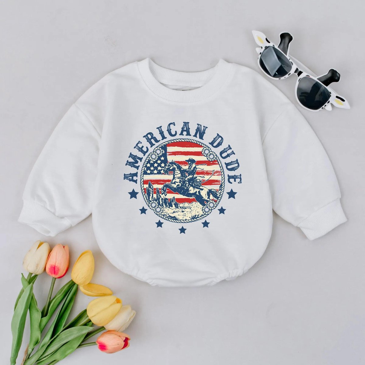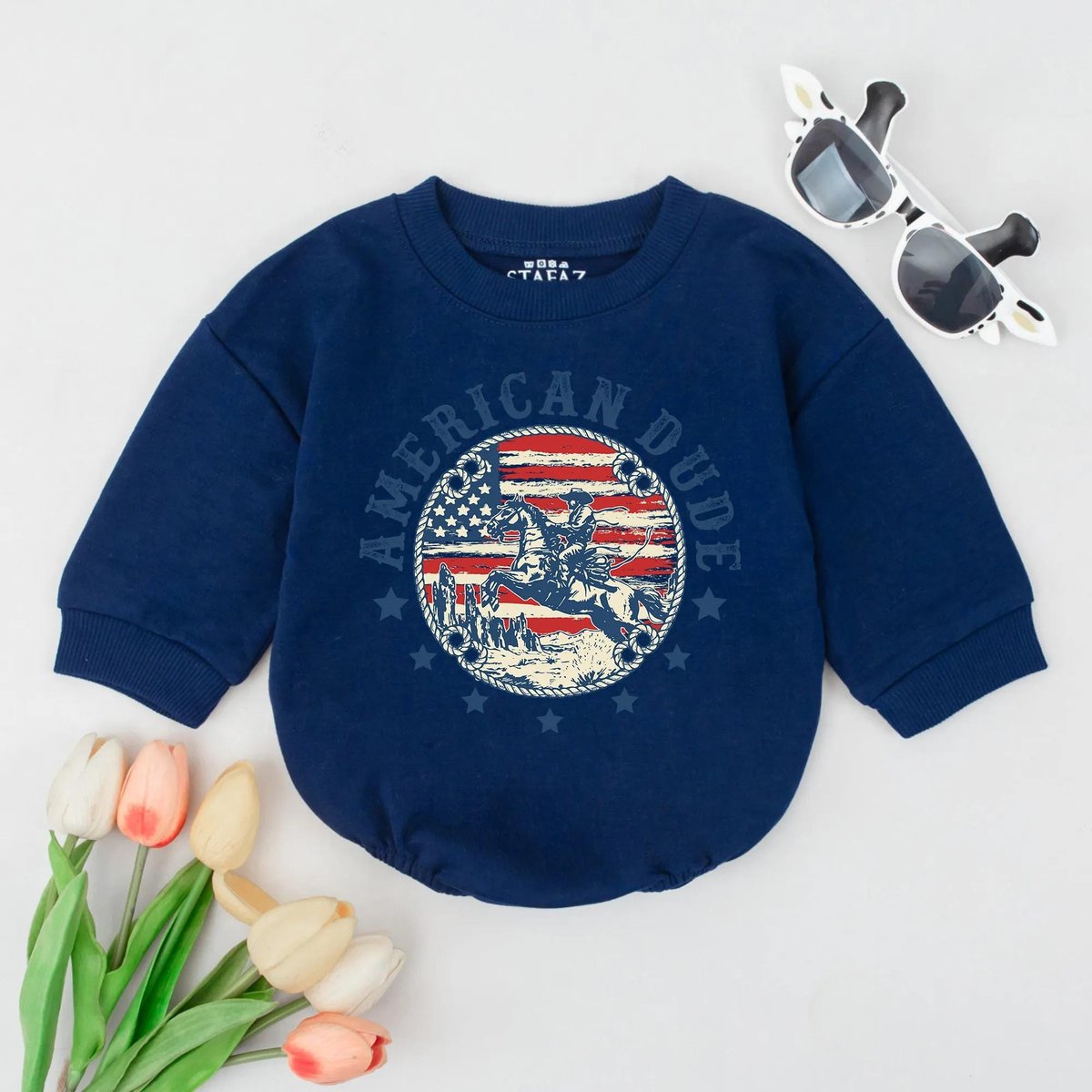 American Dude Baby Romper 4th of July Baby Outfit Western Baby Clothes USA Cowboy Baby Romper Patrio 431