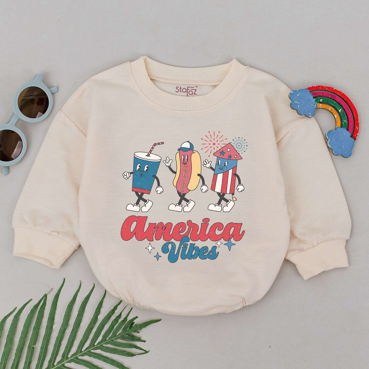American Vibes Romper 4th Of July Romper 1st Fourth of July Independence Day Party in the USA Bodysu
